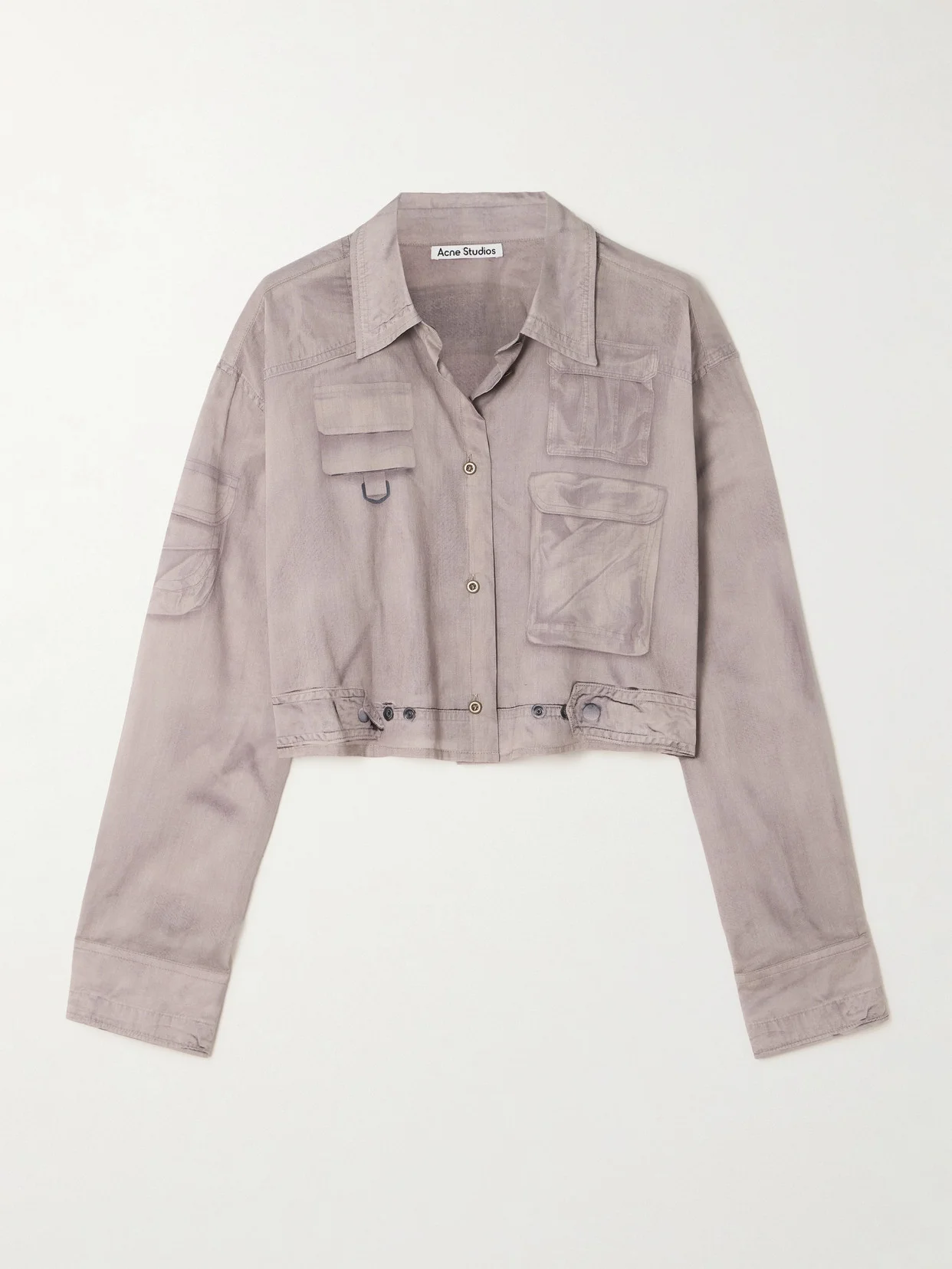 Acne Studios' trompe l'oeil shirt is cleverly printed with cargo pockets and hardware to look like a jacket. It's cut from airy cotton for a loose fit and has a cropped hem that bares your midriff. Wear yours with a cargo skirt.