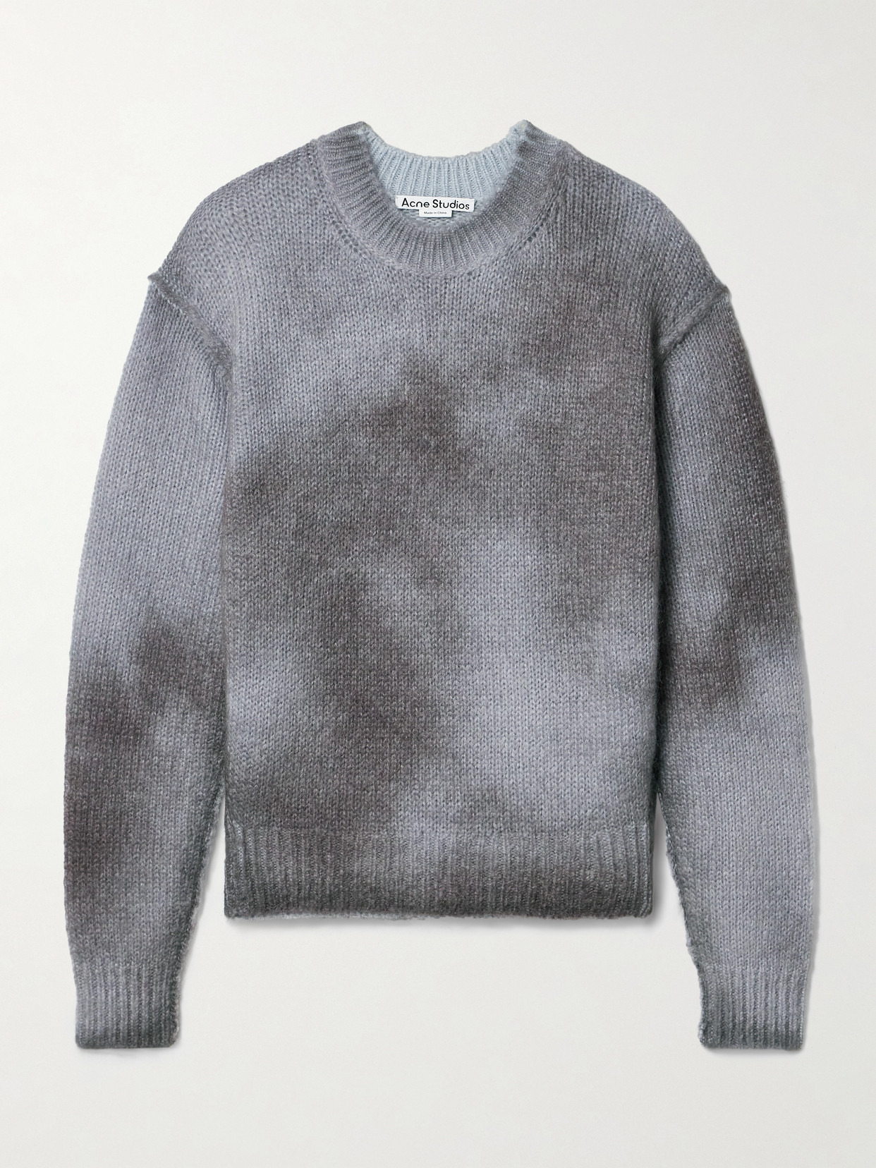 Acne Studios' sweater has a unique sprayed finish, ensuring no two are exactly alike. Knitted with touches of wool and mohair, it has a relaxed shape emphasized by dropped shoulders and ribbed trims.