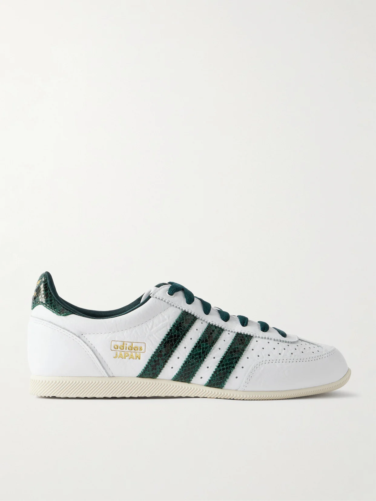 adidas Originals' 'Japan' sneakers have a low profile that's easy to style with just about anything. This pair is made from white textured-leather with glossy snake-effect heel tabs and stripes. Perforations throughout ensure a breathable feel.