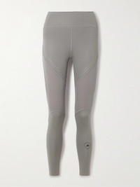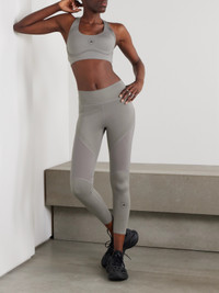 adidas by Stella McCartney's leggings are designed with HEAT.RDY technology to keep you comfortable and cool during intense workouts. Made from stretch recycled fabric, they have a smooth waistband and perforations along the paneled legs for extra ventilation. The black logo pops against the 'Deep Dove' shade.