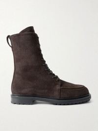 Aeyde's sleek footwear is designed in Berlin and brought to life through fine Italian craftsmanship. These 'Tate' boots are handmade from suede with grippy soles, and lace up neatly through the front. Show them off with cropped hems. Size & Fit - Fits true to size, take your normal size - Only available in full sizes, go up to the nearest whole size if you take a half size - Italian sizing Details & Care - Heel measures approximately 25mm/ 1 inch - Chocolate suede (Cow) - Lace-up front and zip fastening along side - Designer color: Moka