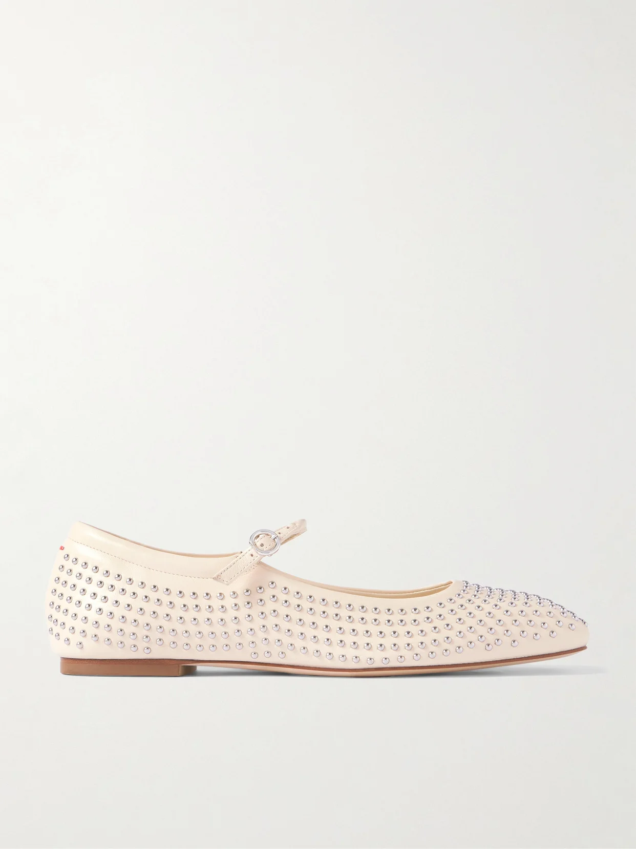 Aeyde creates wear-forever shoes that'll elevate anything you style them with. These 'Uma' flats have been crafted in Italy from supple cream leather in a sweet Mary Jane shape with square toes and buckle-fastening straps. The silver-tone studs make them feel so cool.