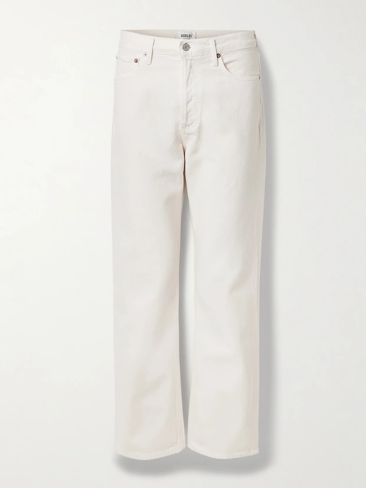 AGOLDE's '90s' jeans are designed to resemble a vintage pair from their namesake era. Made from faded organic denim, they have a mid rise and classic straight legs. Wear yours with everything from graphic tees to chunky sweaters. Lower-Impact Materials. This product is made using at least 50% lower-impact materials or ingredients. Find out more about our NET SUSTAIN criteria here.