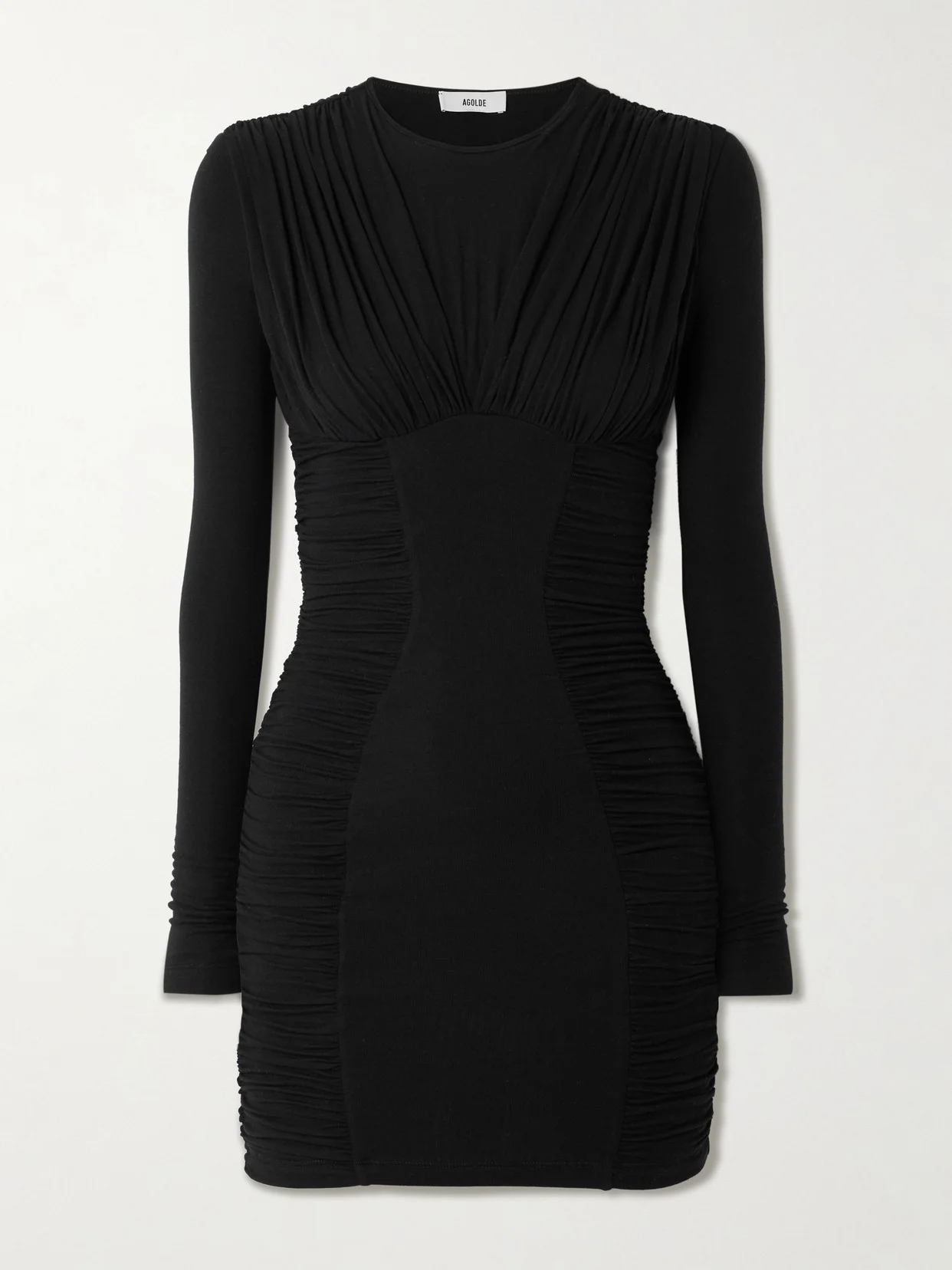 AGOLDE's 'Abbi' mini dress is the kind you can dress up or down, depending on your accessories. It's been made in the USA from stretch-Lyocell and is paneled and ruched to define your figure. Frame one of the long sleeves with a statement cuff or bracelet.