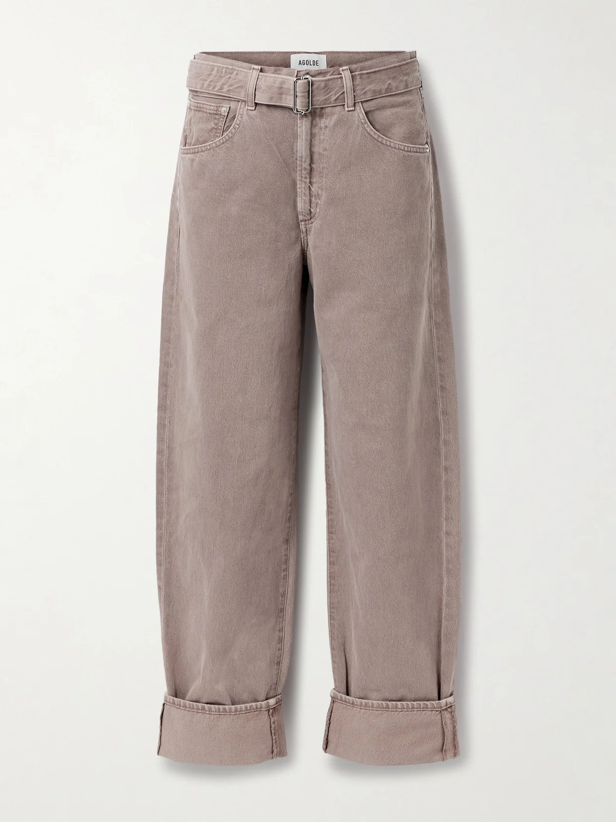 AGOLDE's jeans are designed with rolled cuffs that give them a cool, relaxed take. Cut from brown denim, they're threaded with a coordinating, utilitarian belt and have straight, subtly tapered legs. Lower-Impact Materials. This product is made using at least 50% lower-impact materials or ingredients. Find out more about our NET SUSTAIN criteria here.