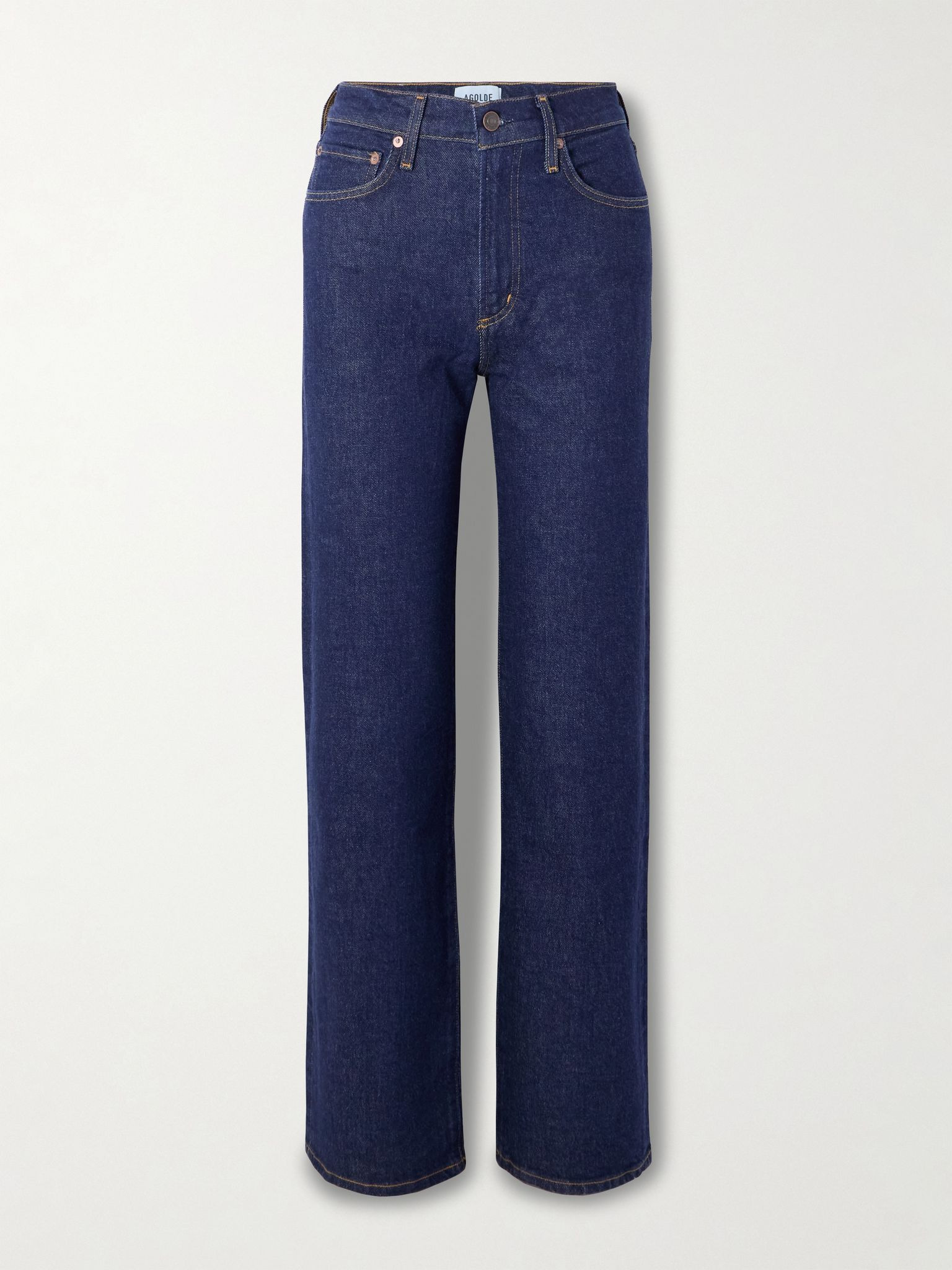 AGOLDE's 'Harper' jeans are made from dark-blue denim. This high-rise pair has relaxed, straight legs and a classic five-pocket construction traced with contrasting threads. Lower-Impact Materials. This product is made using at least 50% lower-impact materials or ingredients. Find out more about our NET SUSTAIN criteria here. Details & Care - Dark-blue denim - Button and concealed zip fastening at front - 99% regenerated cotton, 1% elastane - Machine wash - This product has been made with regenerative cotton, supporting holistic farming practices that increase soil health, improve biodiversity and reduce carbon emissions