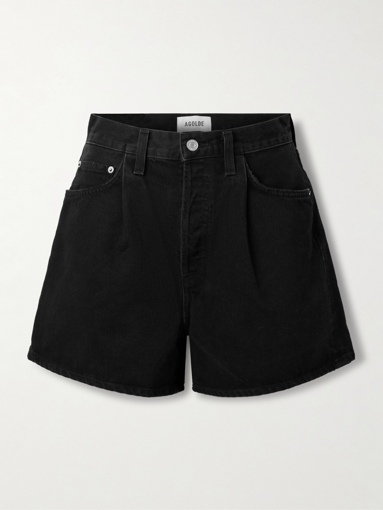 AGOLDE's 'Rhoda' shorts are made from black organic denim that's blended with recycled Lyocell and post-consumer recycled cotton. They have a relaxed shape enhanced by pleats and sit high on the hips. Lower-Impact Materials. This product is made using at least 50% lower-impact materials or ingredients. Find out more about our NET SUSTAIN criteria here.
