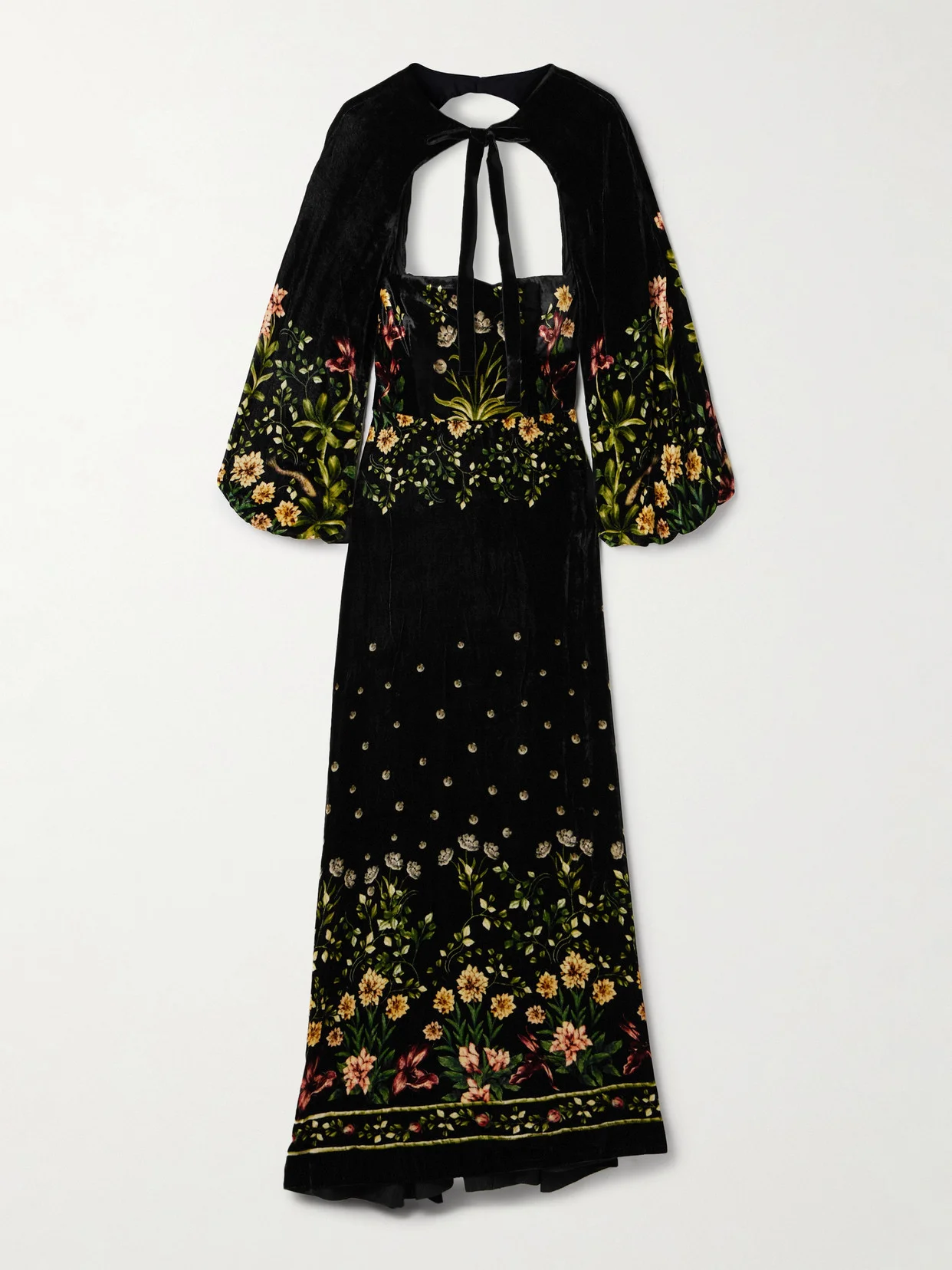 Alamo Paramo Cutout Floral-print Velvet Maxi Dress