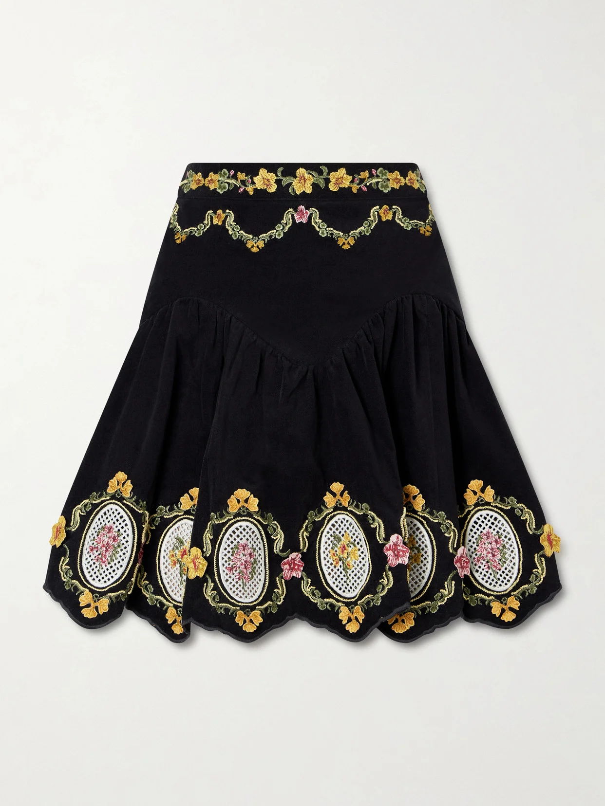 Asai Cordillera Scalloped Embroidered Cotton-blend Velvet Mini Skirt