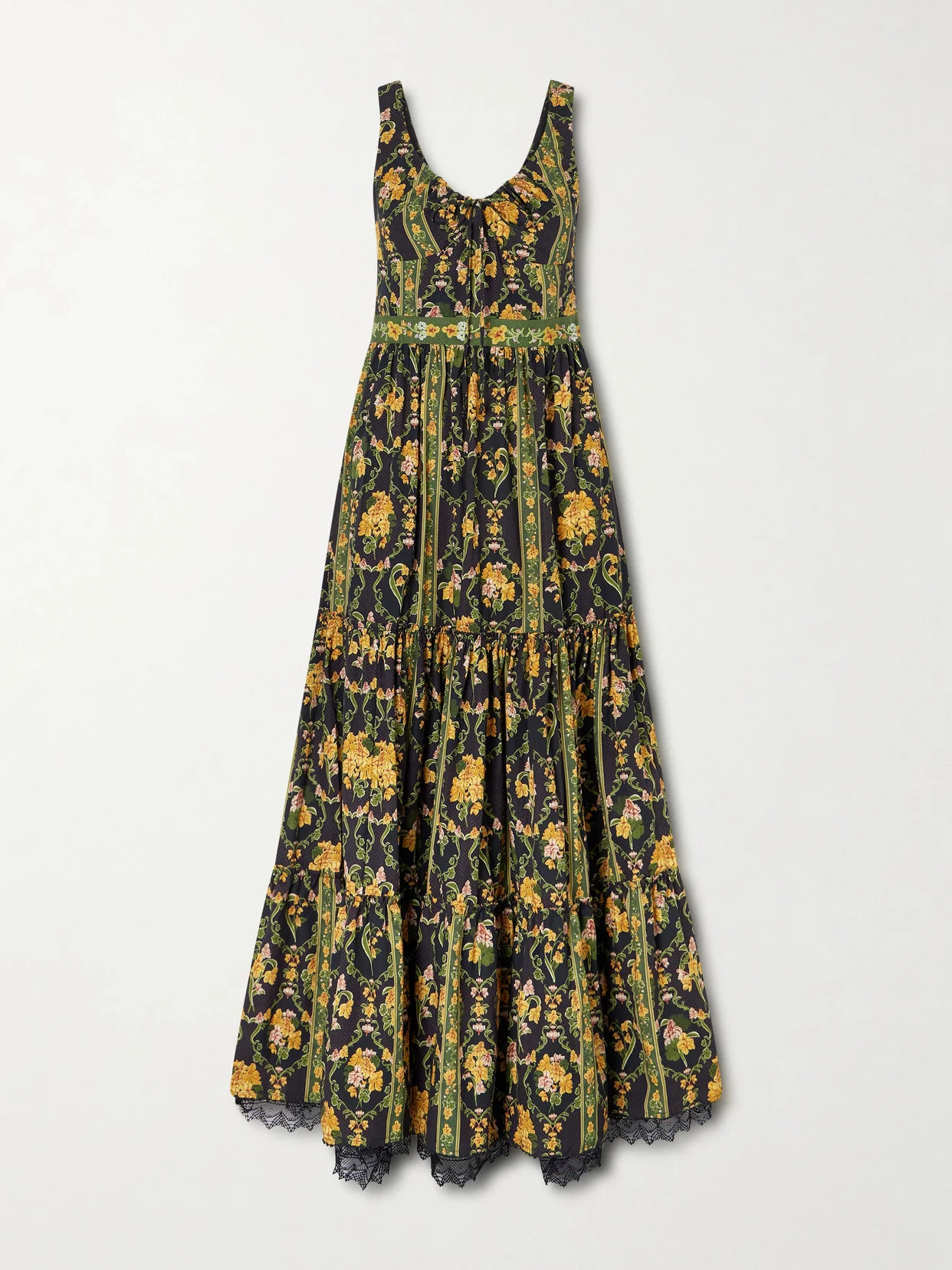 Azulejo Cordillera Tiered Embroidered Printed Cotton-voile Maxi Dress