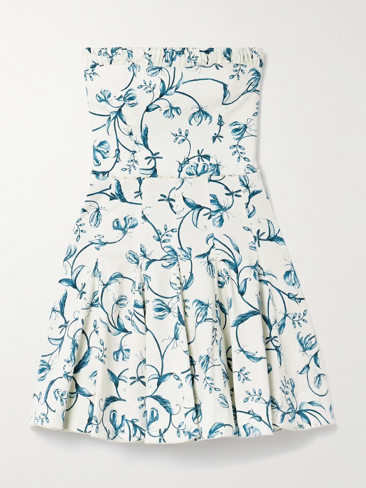 Caudal Gloriosa Strapless Embellished Floral-print Cotton-blend Mini Dress