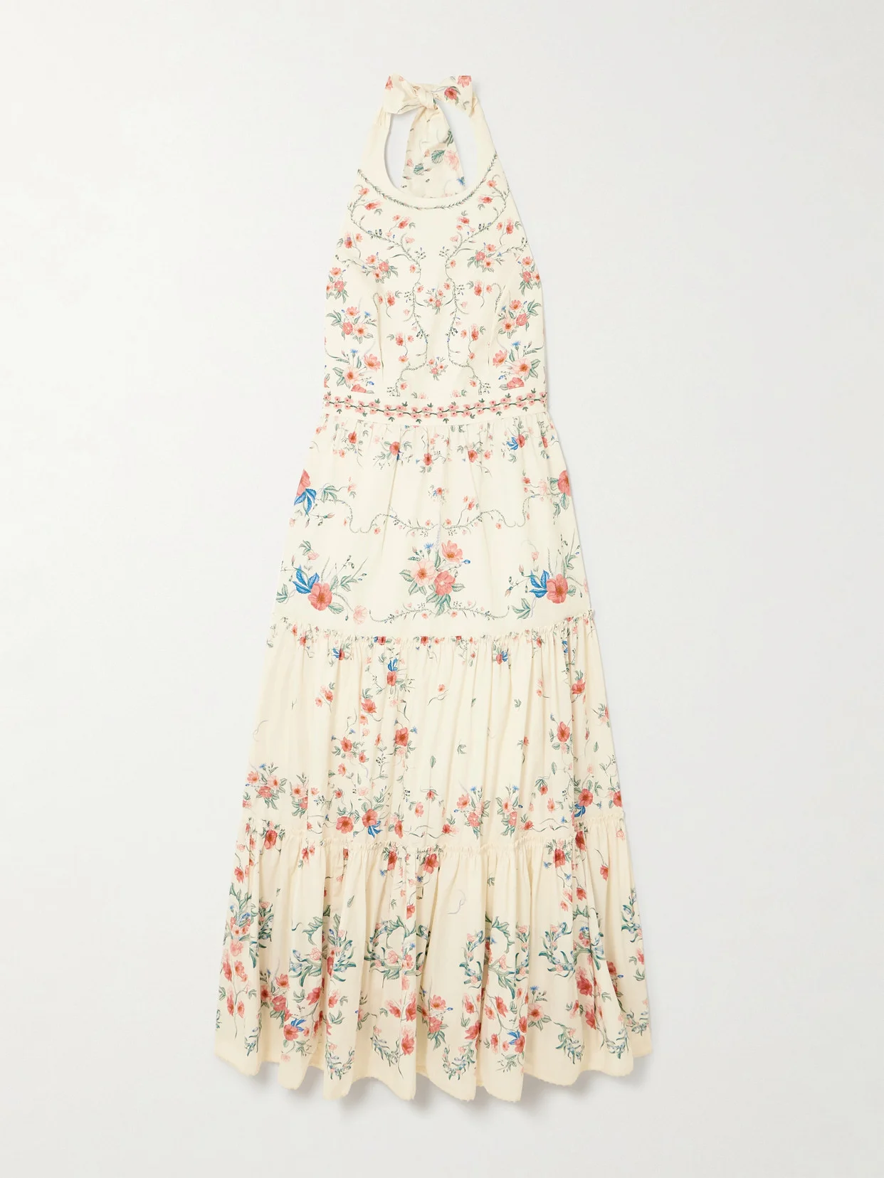 Consuelo Mosqueta Embroidered Tiered Floral-print Cotton-poplin Midi Dress