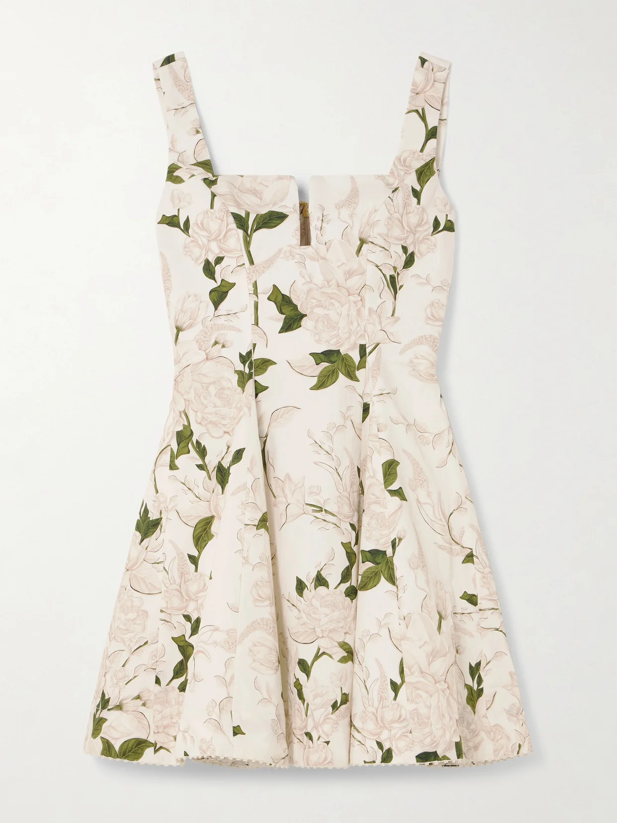 Agua by Agua Bendita says its 'Gardenia' mini dress "captures the essence of femininity". Made from cotton printed with beautiful flowers, it fits slim through the bodice before flaring out to a voluminous, softly pleated skirt. The notched neckline is fitted with boning for structure.