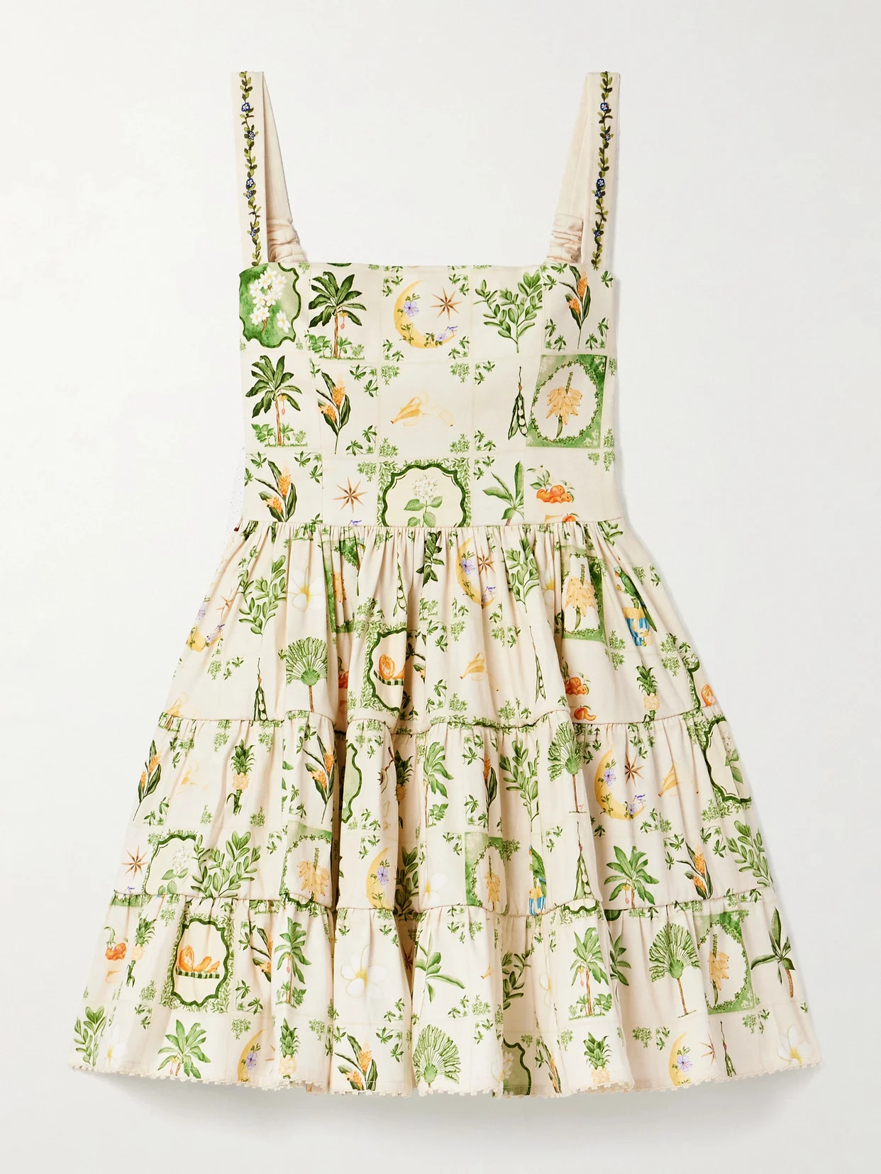 Local craftspeople in Colombia are responsible for the impeccable fit and finishes of Agua by Agua Bendita's 'Lima' mini dress. It's made from lightweight, breathable cotton-blend that's printed with a variety of tropical fruit and flora and nips in at the waist before falling to a floaty, tiered hem. Responsible Craftsmanship. This product promotes artisanal skills and a brand that invests in communities and adheres to fair-trade principles. Find out more about our NET SUSTAIN criteria here. Small to size. See Size & Fit notes.