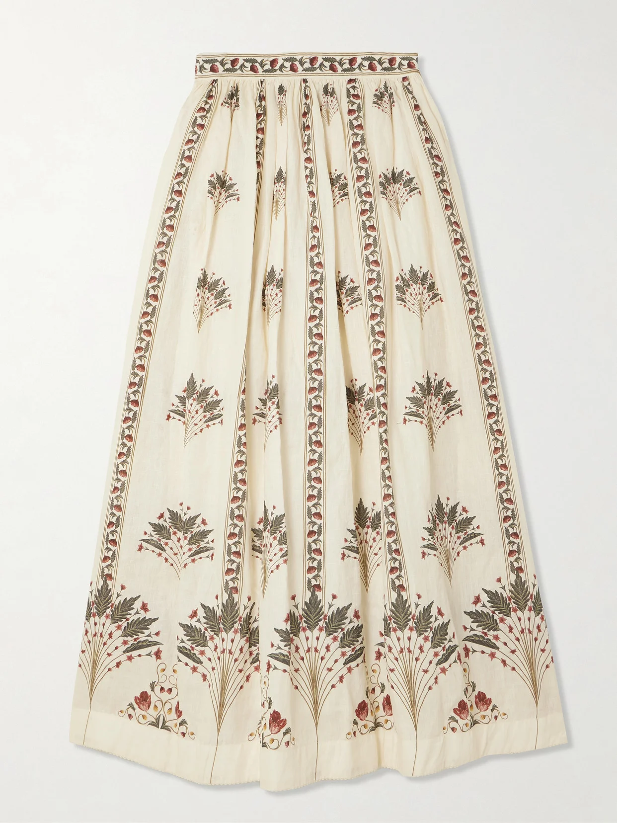 Ocaso Tangelo Andes Pleated Floral-print Linen Maxi Skirt