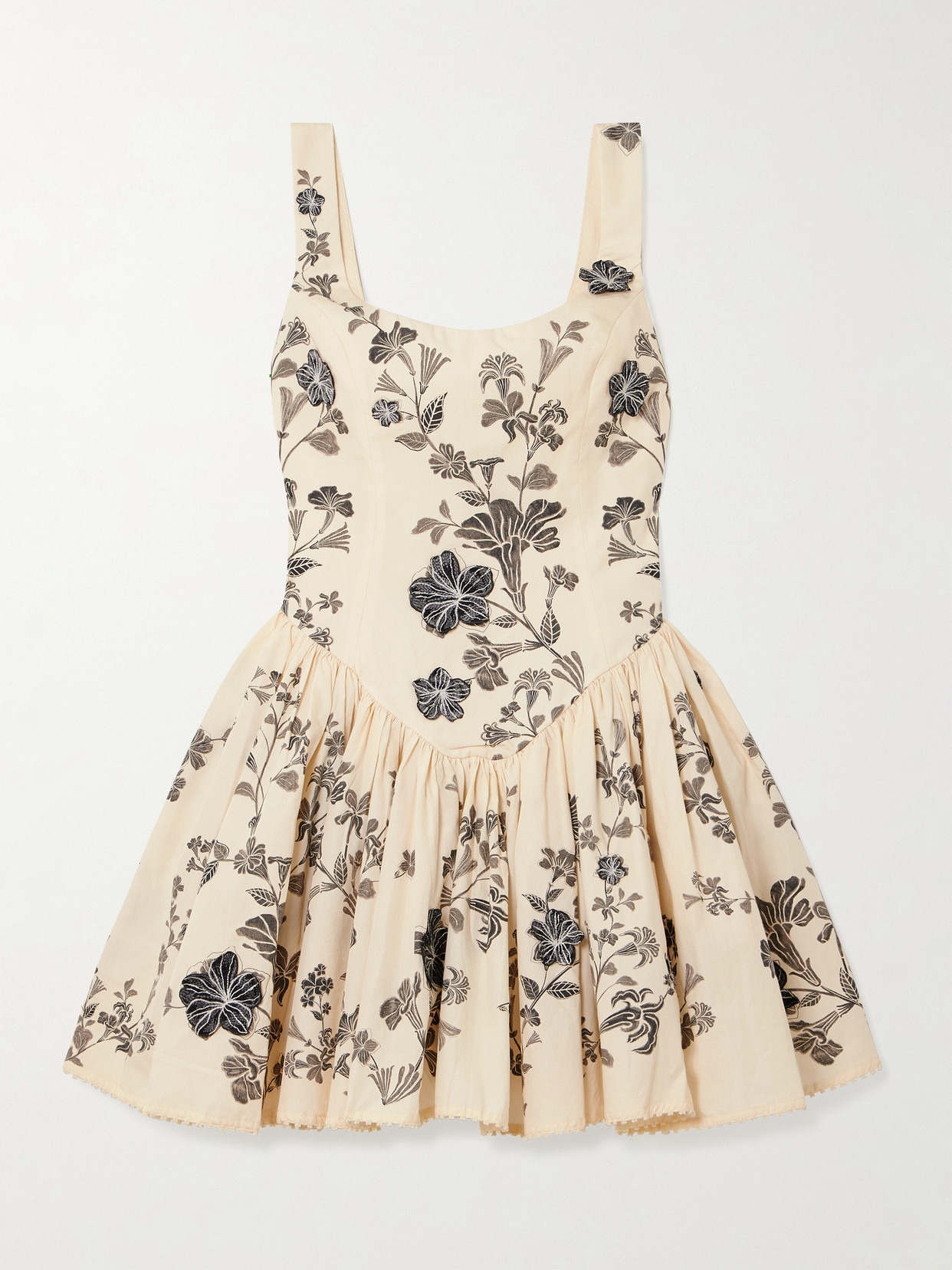 Pluma Guayacan Appliquéd Gathered Printed Cotton Mini Dress