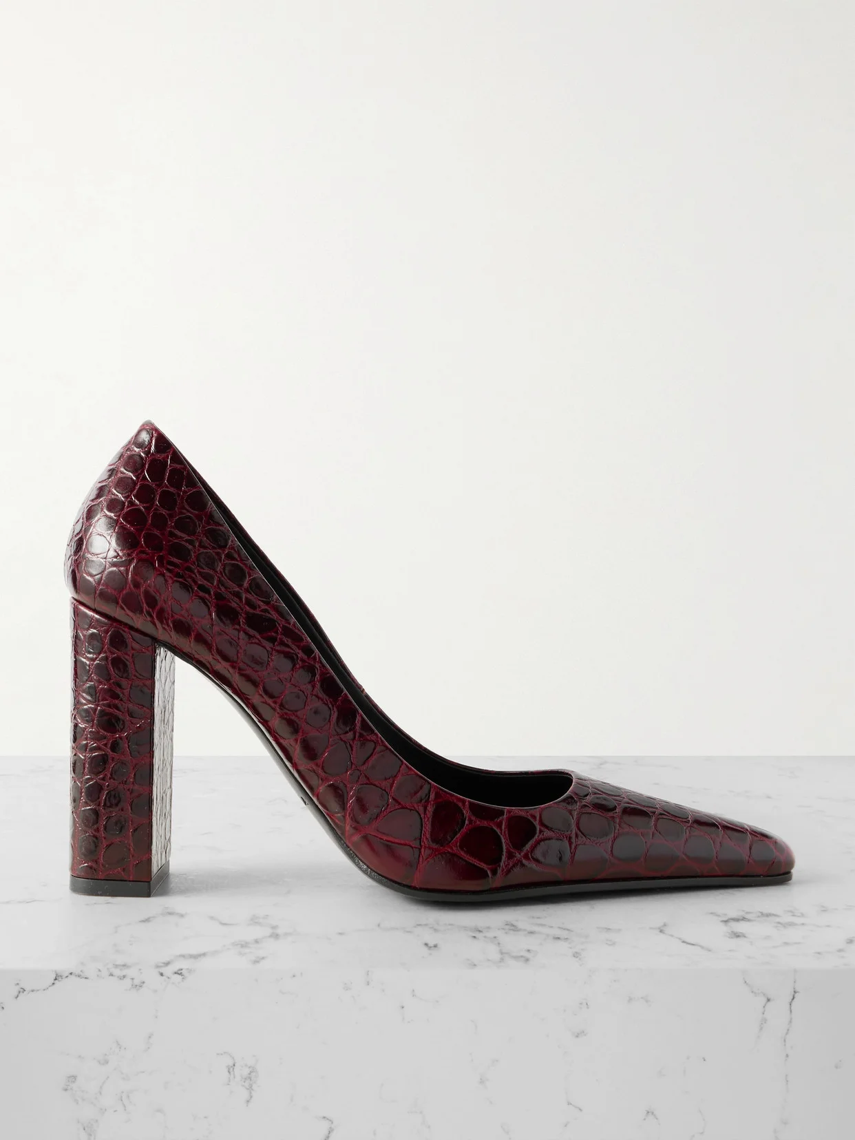 Alaia's designs bring an element of glamorous depth to your outfits through shape and texture. These pumps are made from croc-effect leather and have 90mm block heels that contrast the pointed toes.