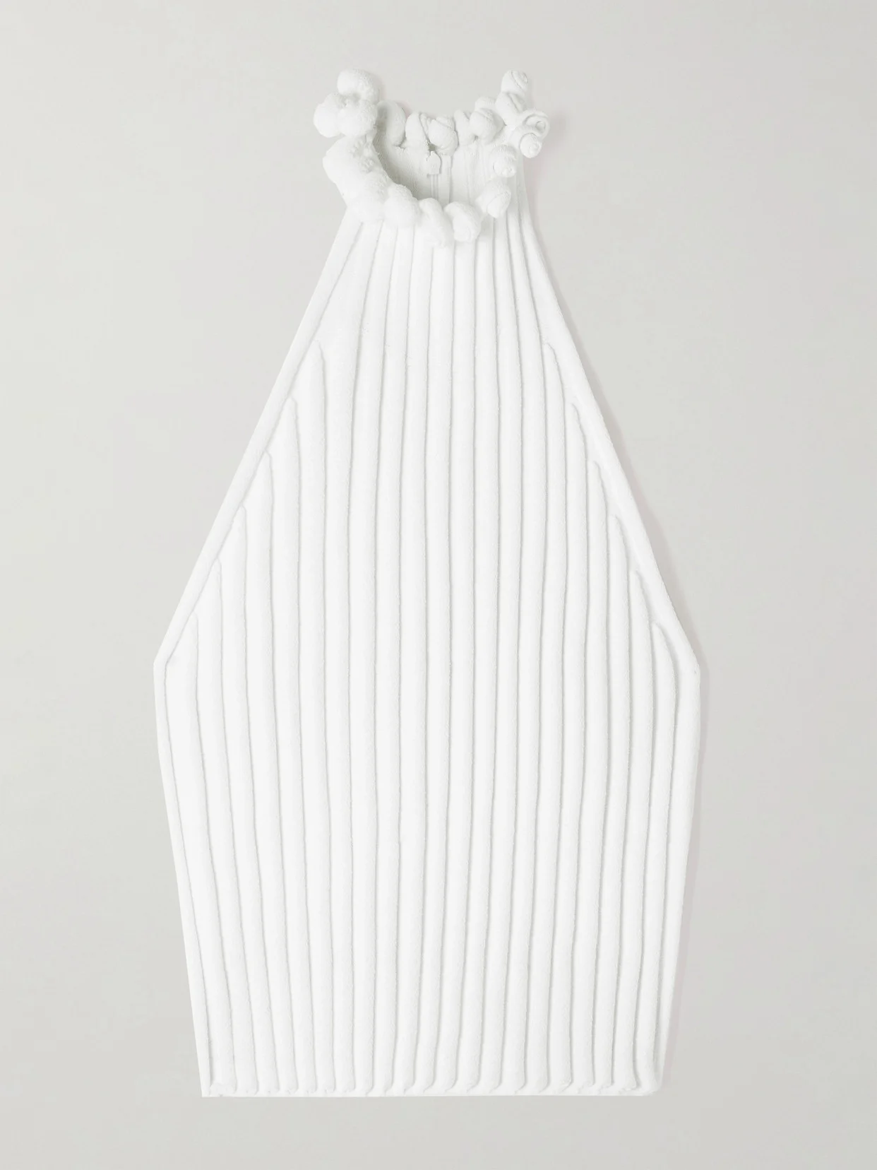 RIBBED KNIT CURLED TRIMMED HALTER TOP