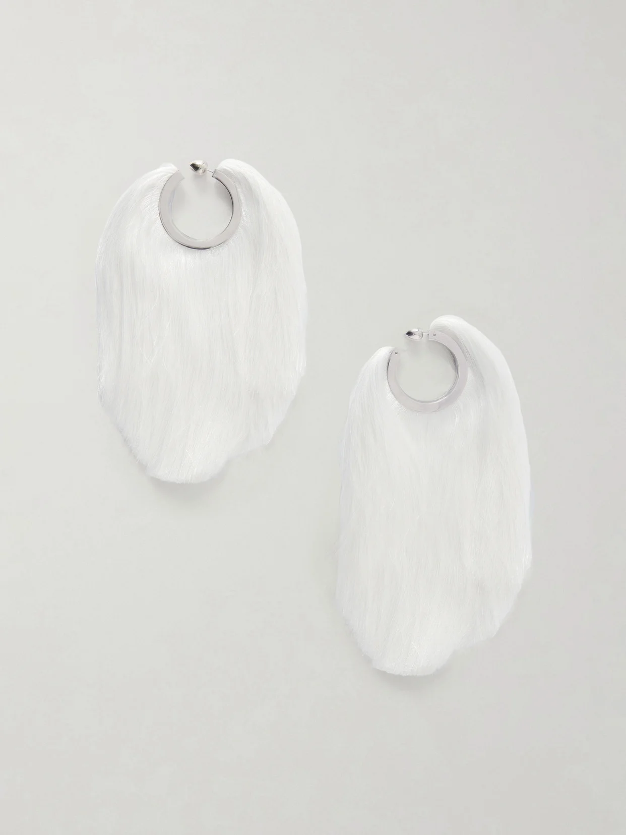 Restraint and expression converge through refined craft in Alaia Spring '26. These earrings are made from gold-toned brass set with fringes that drape elegantly. Consider opting for minimal jewelry to let the earrings stand out.