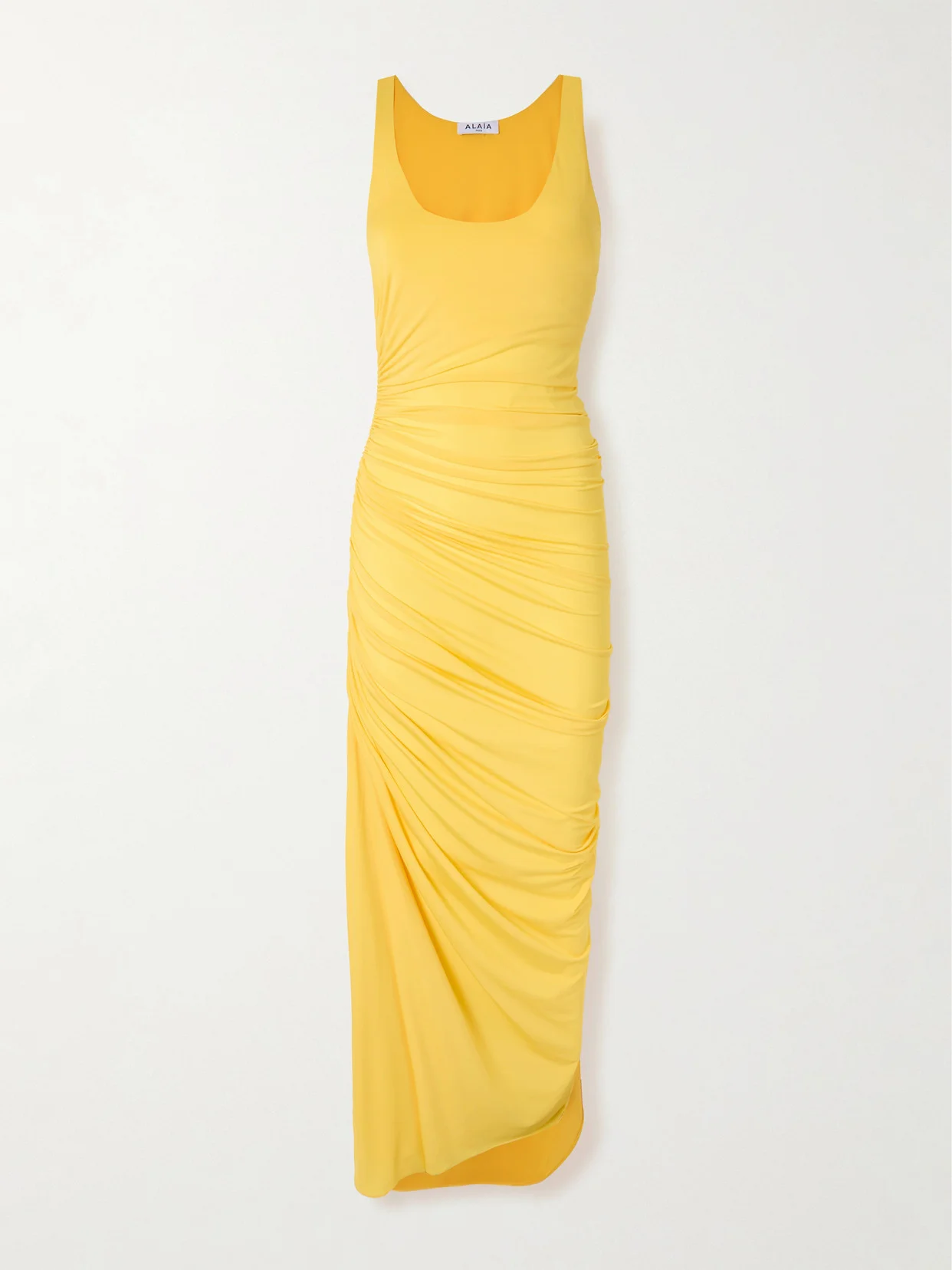 Alaia's dress is gathered at the sides, so it celebrates and enhances your natural form. Made from stretch-jersey, it's cut in a slim, sleeveless profile with a little more fluidity through the skirt. Wear yours with sandals or mules and bold jewelry.