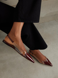 Le Cœur PU and patent-leather slingback point-toe flats Burgundy