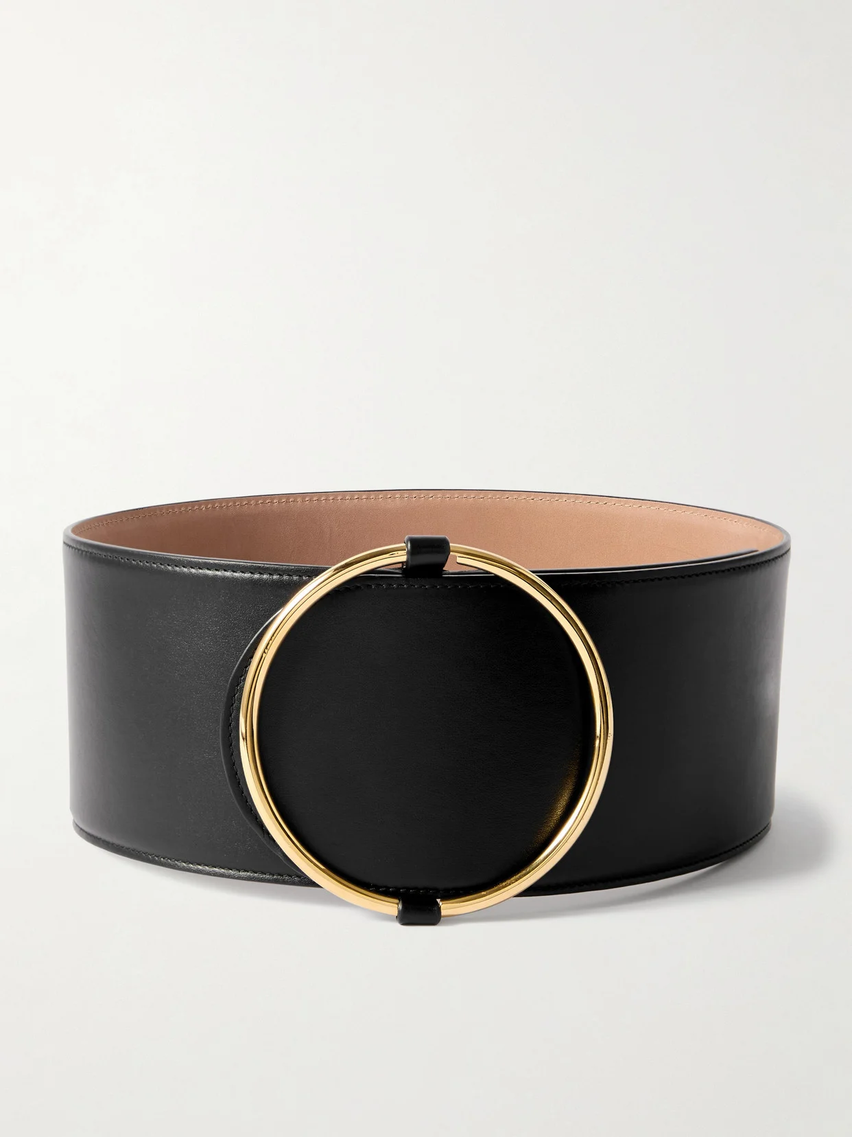 Alaia always revisits the waist belt - it's the perfect way to achieve the label's iconic hourglass shape. This version is made from leather in a dramatic width and has a circular gold-tone buckle that's simple yet striking. Try yours over a blazer or dress.