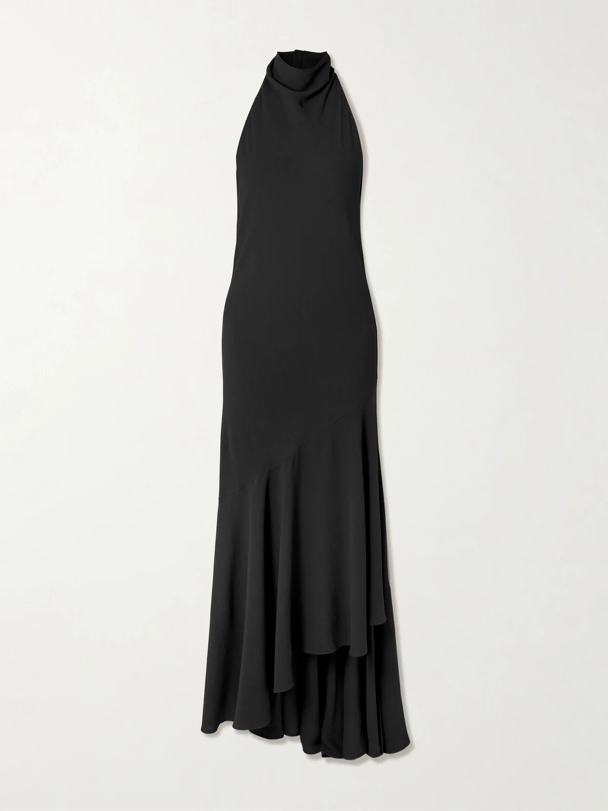 Open-back Asymmetric Ribbed Wool Maxi Dress