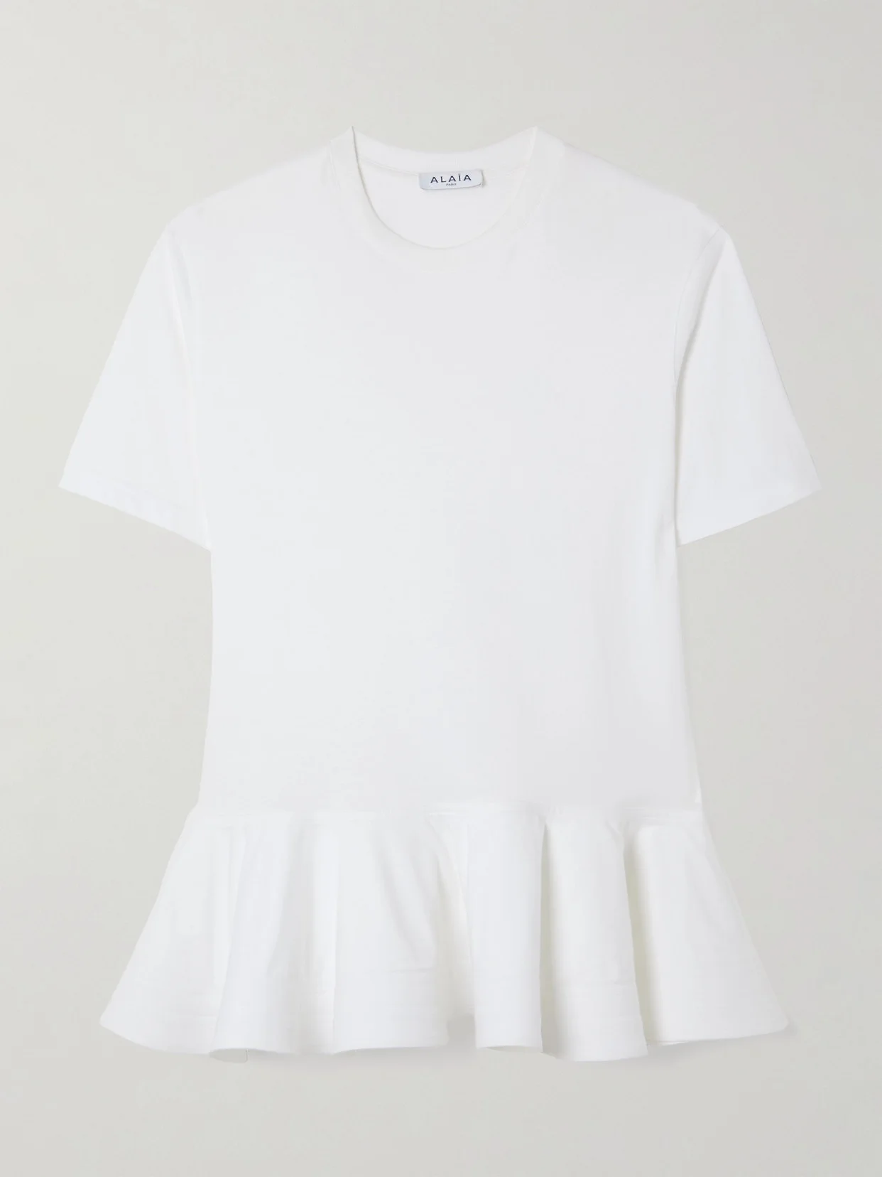 Alaia's take on the classic white T-shirt is as sculptural and modern as you'd expect from the brand. Made from cotton-jersey, it's designed with a reinforced poplin peplum hem that adds a sweet dimension.