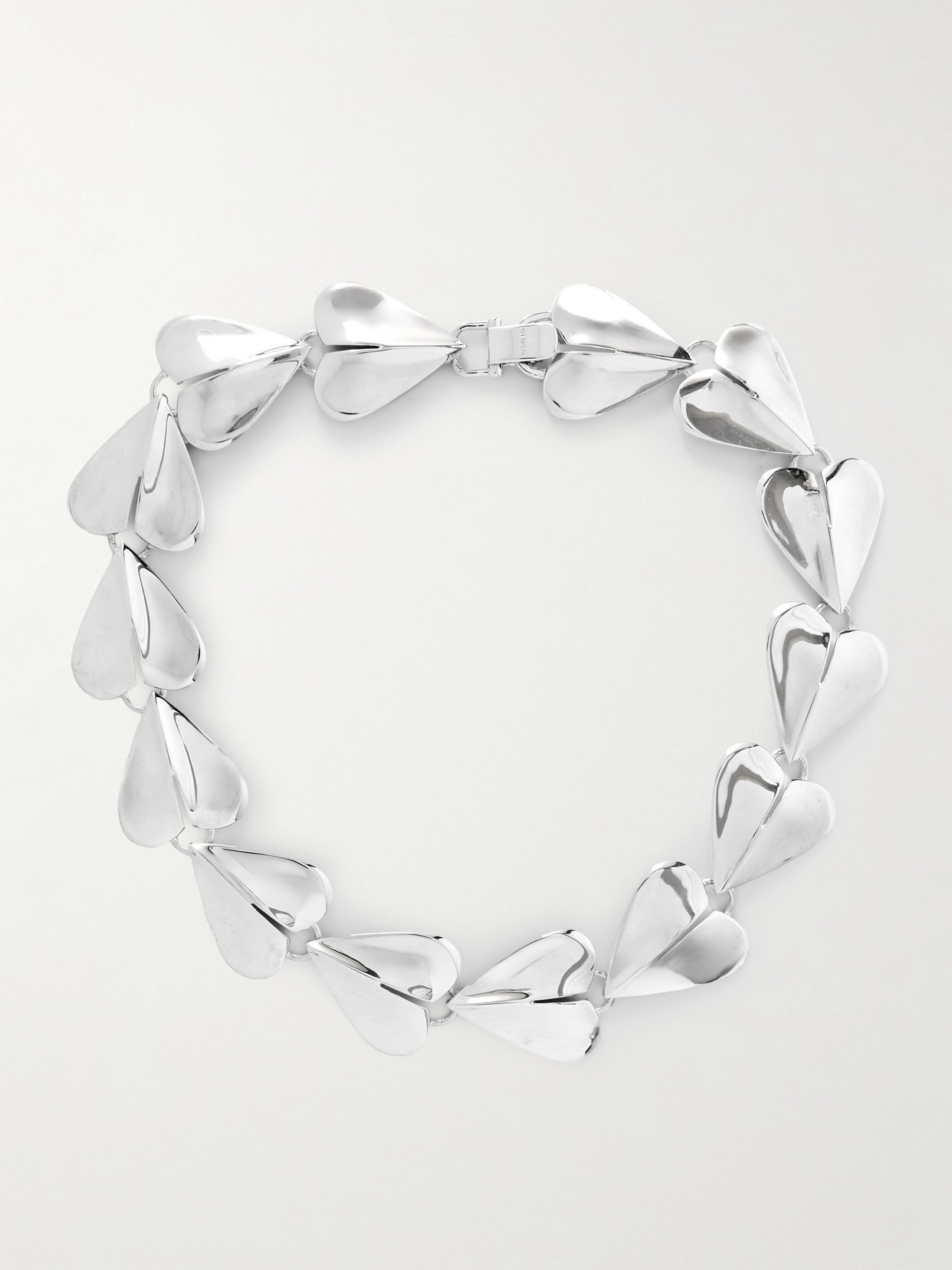 Alaia's choker necklace looks a little edgy at first glance, but reveals a softer side up close. Made in Italy from silver-tone metal, it's composed of a series of interlocking hearts. Wear it with a scooped or strapless neckline for the clearest display.