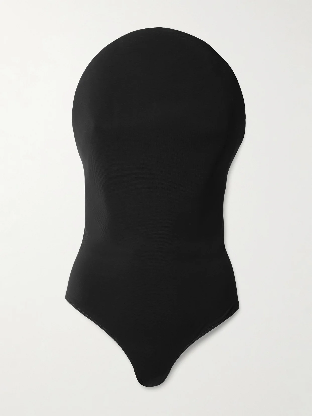 For anyone au fait with the collections, the curved neckline of Alaia's bodysuit is instantly recognizable as the brand's. It's made from jersey that's sculpted to gracefully sweep across your decolletage.