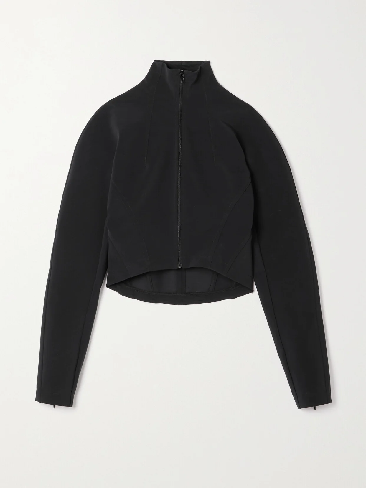 Azzedine Alaia was a master of sculptural silhouettes, and Pieter Mulier continues his legacy in his reign at the house. This jacket is made from compact stretch-tulle and boned at the hem for a corset-inspired fit. Note the striking curved shoulders - they mean you can afford to keep jewelry simple.