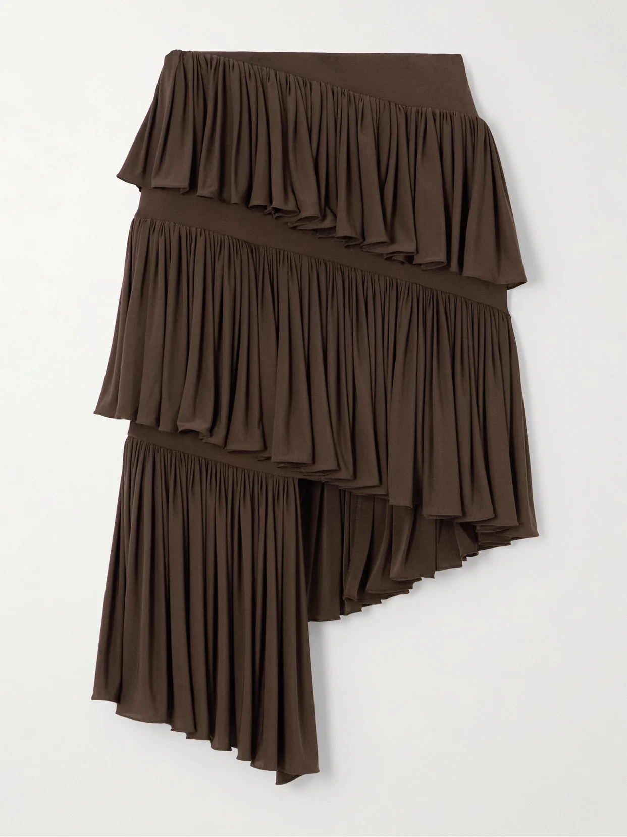 Tiered Asymmetric Jersey Mini Skirt