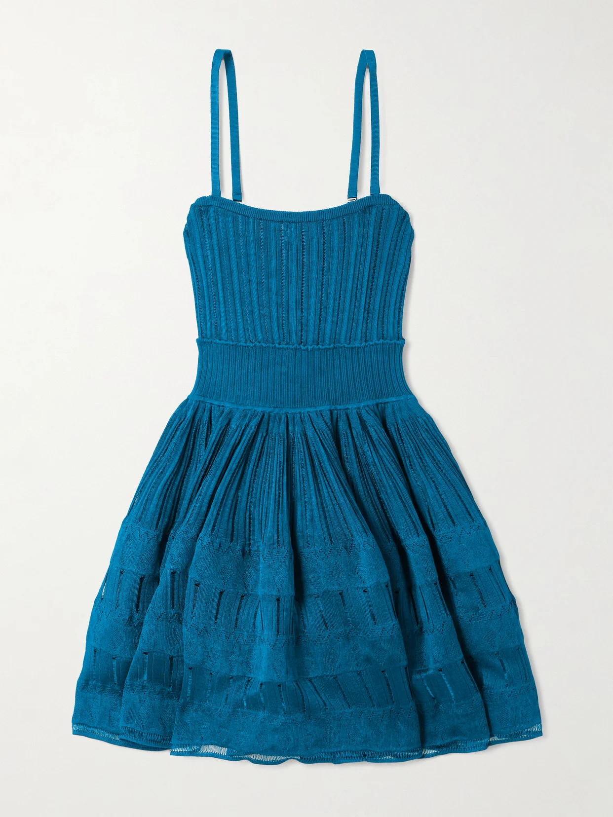 Alaia's mini dress is knitted with an array of different techniques, from ribbed stitches to pointelle, creating beautiful texture throughout. It's designed to fit slim before flaring out to a floaty hem and has detachable straps. Wear yours with the Maison's sculptural heels.