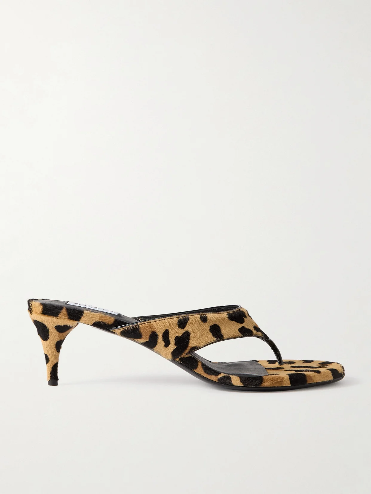 It's always worth adding a dash of leopard-print to an outfit. Alaia's thong sandals have been made in Italy from tactile calf hair and set on 55mm heels. Style yours with dresses, skirts and cropped pants.