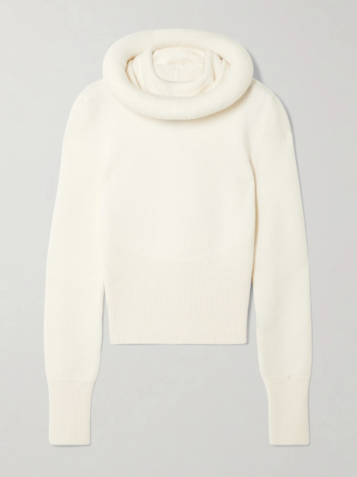 SCULPTURAL HOOD RIBBED KNIT JUMPER