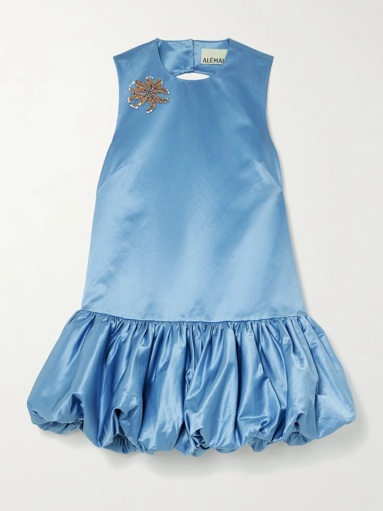 EXCLUSIVE AT NET-A-PORTER. Created in collaboration with artist Sam Pauletto and inspired by the Caspian Sea, ALEMAIS's dress is embellished with beaded starfish that glimmer as they catch light. It's cut from cotton and silk-blend duchesse-satin and has a shift silhouette with a voluminous bubble hem. Complement the soft blue shade with metallic accessories.