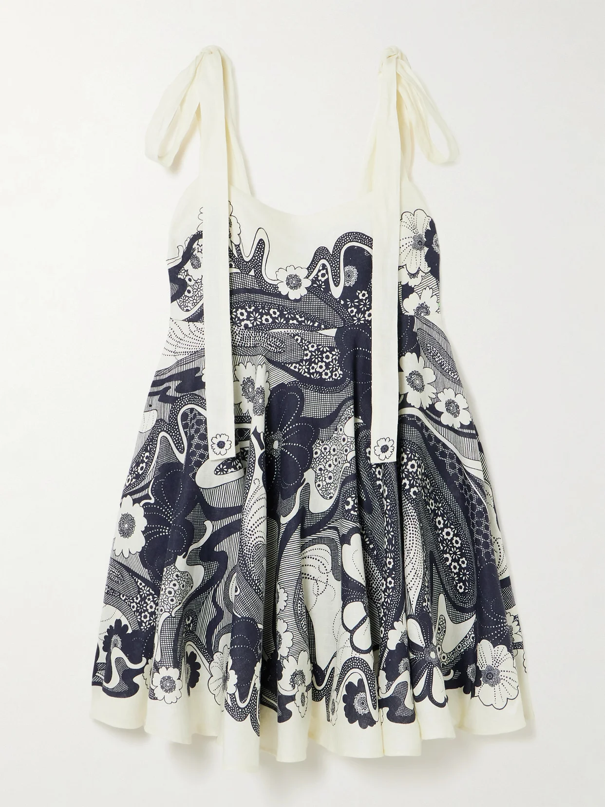 ALEMAIS' 'Mickey' mini dress is printed with swirling florals that capture the free-spirited mood of the '70s. It's cut from breezy linen-gauze and has a shirred back and dainty self-tie shoulder straps.