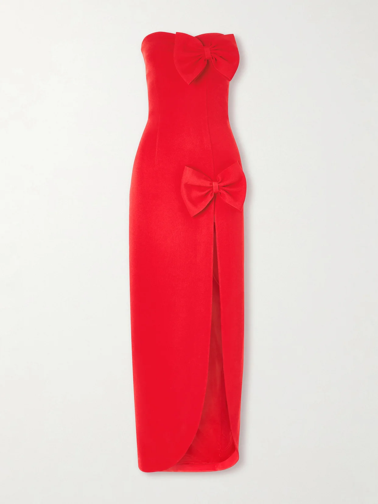 Alessandra Rich's gowns are a regular fixture on the red carpet. This strapless one is made from red cady that's playfully adorned with oversized bows and has a thigh-grazing split. Wear yours with peep-toe mules.
