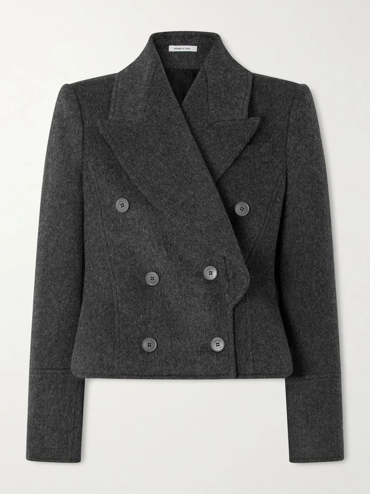 Tailoring is always standout at McQueen. This blazer is made from wool-felt for a cropped fit and has a double-breasted front with wide peak lapels that draw the eye upwards.