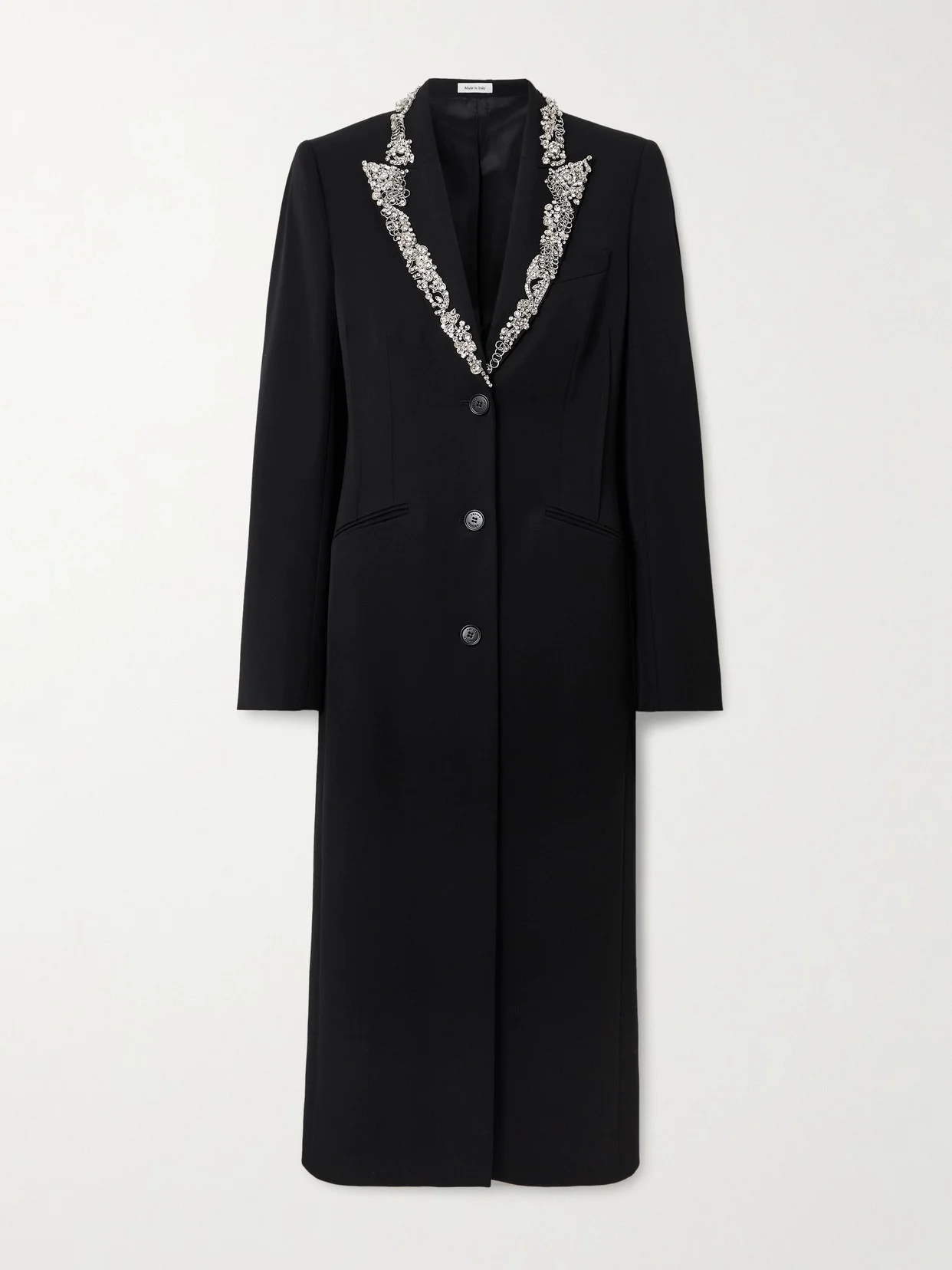 McQueen's coat is a true standout thanks to the silver-tone and crystal embellishments along the peak lapels. It's been tailored in Italy from grain de poudre wool with a single-breasted front and is darted through the middle to draw in the waist.