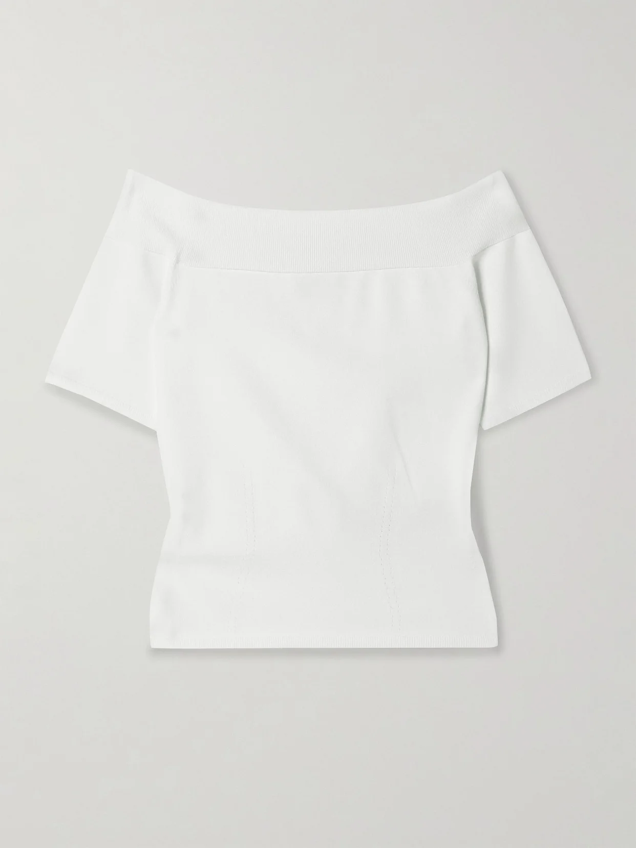 Alexander McQueen's top is designed in an off-the-shoulder silhouette that beautifully showcases your decolletage. Made in Italy from white stretch-knit, it has a close, figure-hugging fit that's ideal for tucking and layering. Dress it up with a midi skirt or pare it back with jeans.