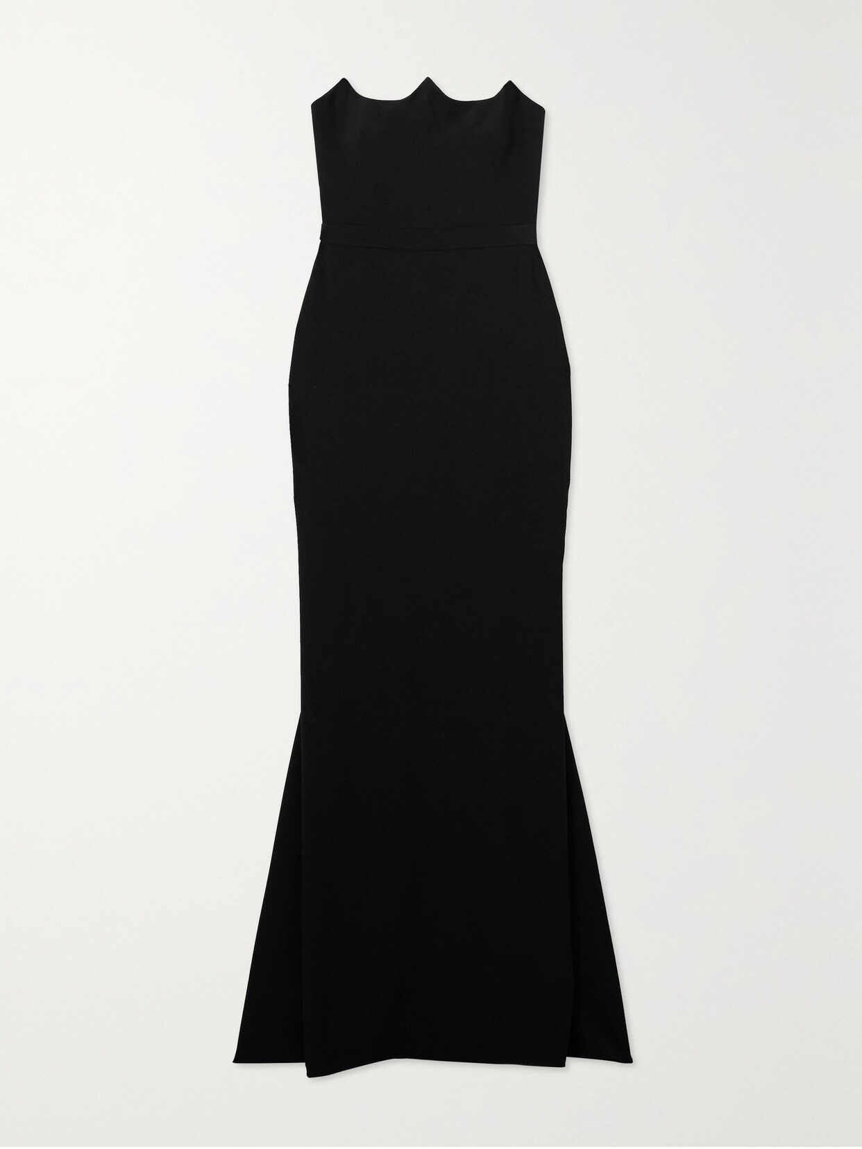 Alexander McQueen's exquisite gown is the embodiment of modern elegance. Cut from black crepe, it fits very close through the bodice and hips before flaring out to a floor-sweeping hem. Complement the reverse sweetheart neckline with an oversized earring from the Fall '23 collection - it's how Naomi Campbell wore it to open the show in Paris.