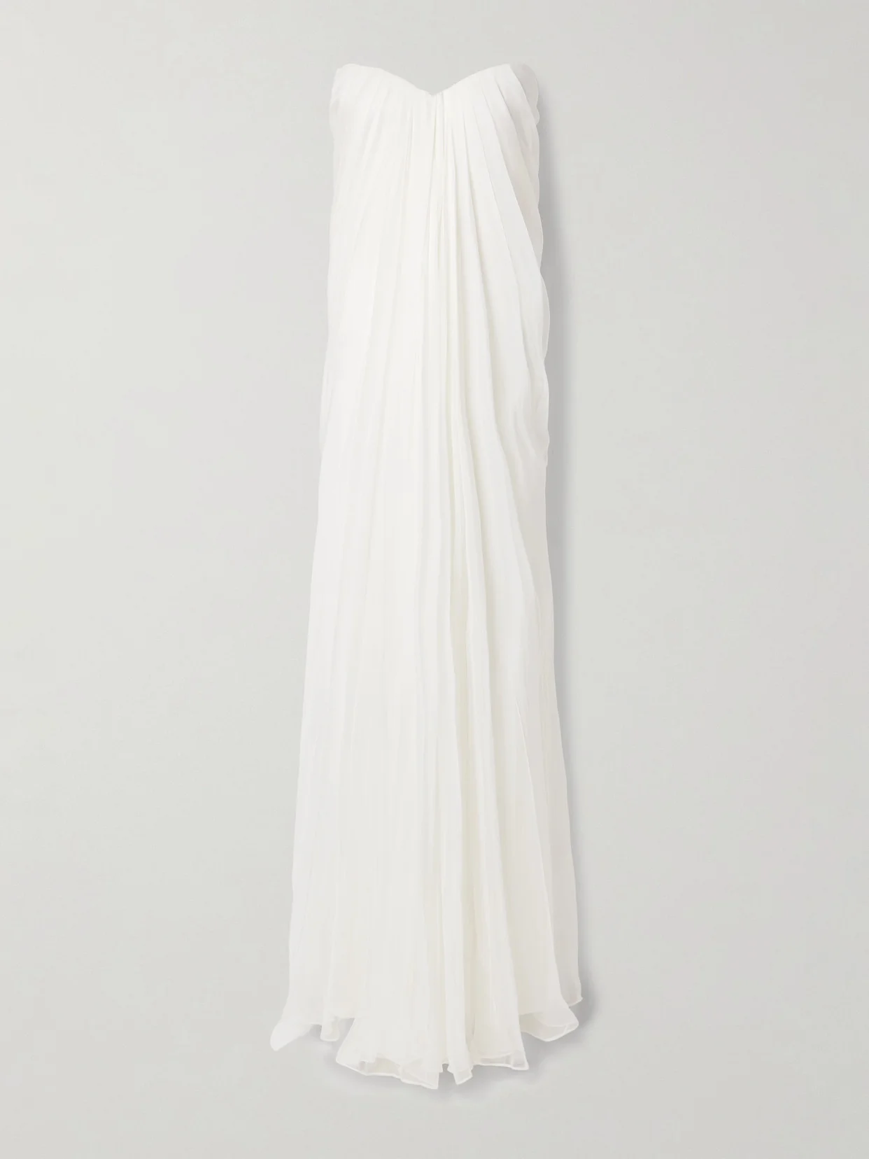 Strapless draped silk-chiffon bustier gown White