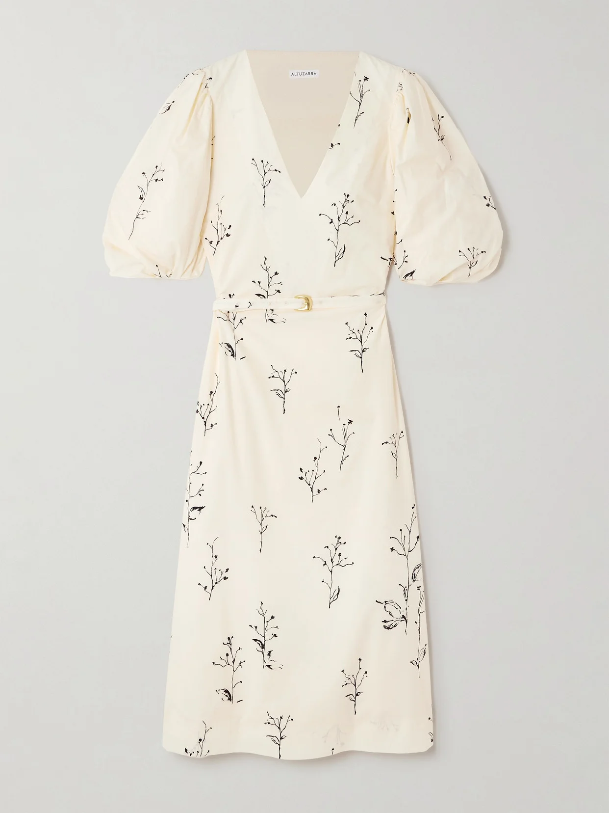 Altuzarra's 'Corrie' dress is patterned with a delicate botanical motif that looks as though it's been sketched by hand. Cut from cotton-poplin, it has voluminous puffed sleeves and comes with a slim belt to cinch your waist. Match your jewelry to the gold-tone buckle.