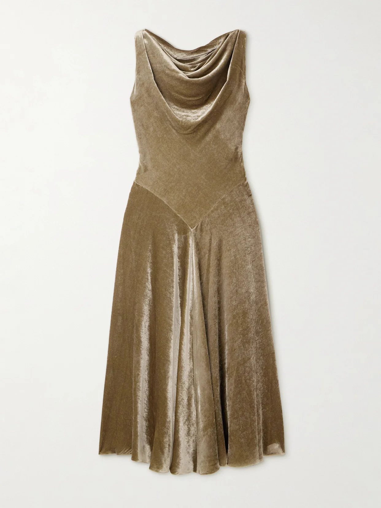 Altuzarra's 'Drina' dress is made from stretch-velvet with a beautiful depth and luster. It has a cowl neckline, a fitted bodice with a diamond-shaped panel and a flowy skirt.