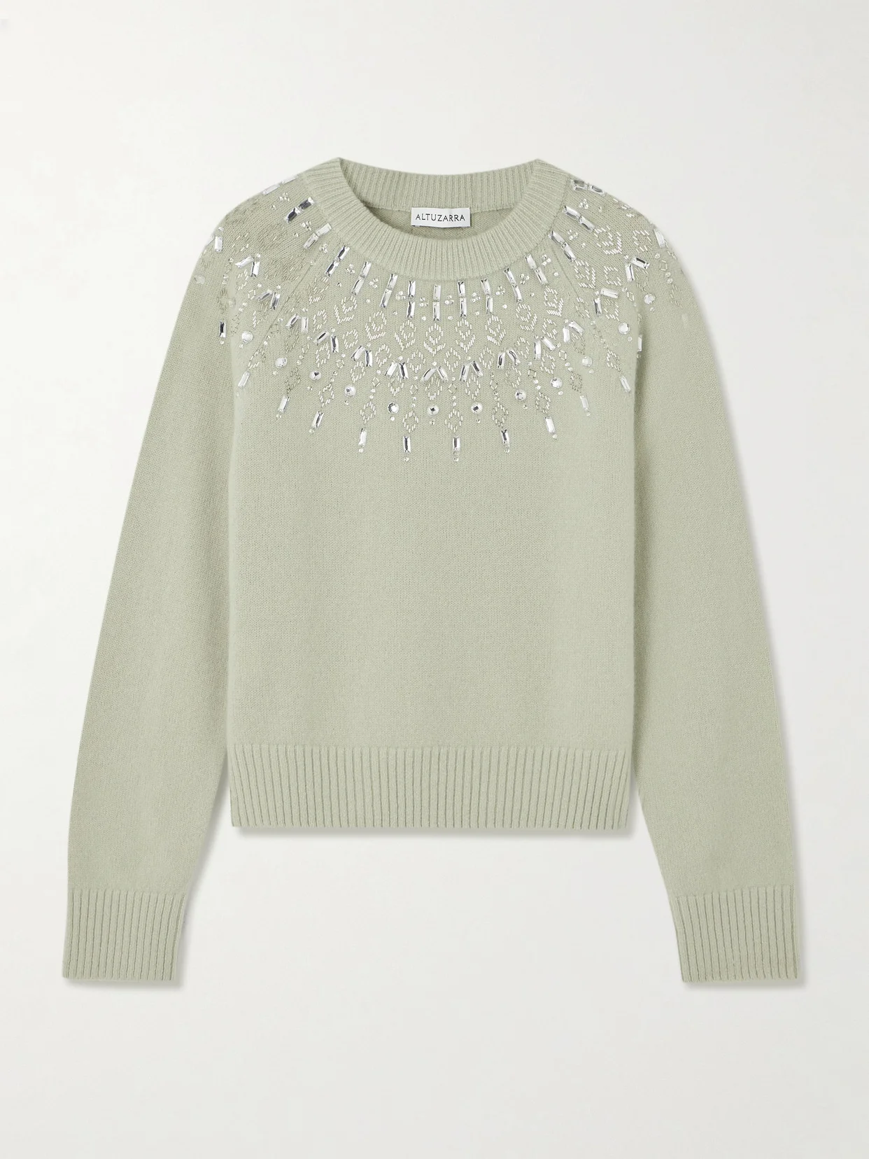 Altuzarra's 'Harold' sweater is embellished with scores of crystals for a touch of sparkle. Made from wool, it has a relaxed shape defined by ribbed trims and a classic crew neckline. Dress yours up or down.