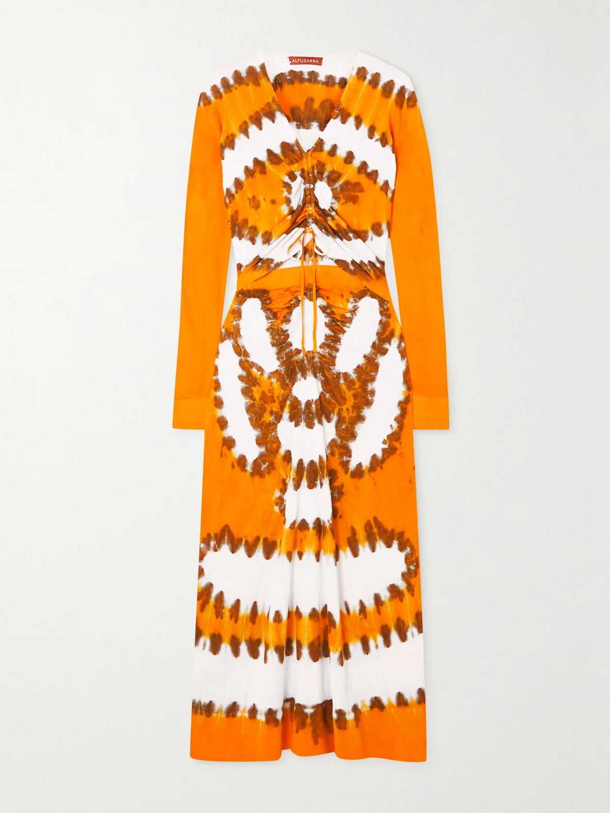 Altuzarra's Fall '22 collection plays with different dying processes - the tie-dyed pattern on this 'Rilia' dress is inspired by Japanese shibori techniques. Knitted in a rich colorway the brand calls 'Marmalade', it's accented with a cut-out detail and ruching through the bust. Pair yours with chunky boots.