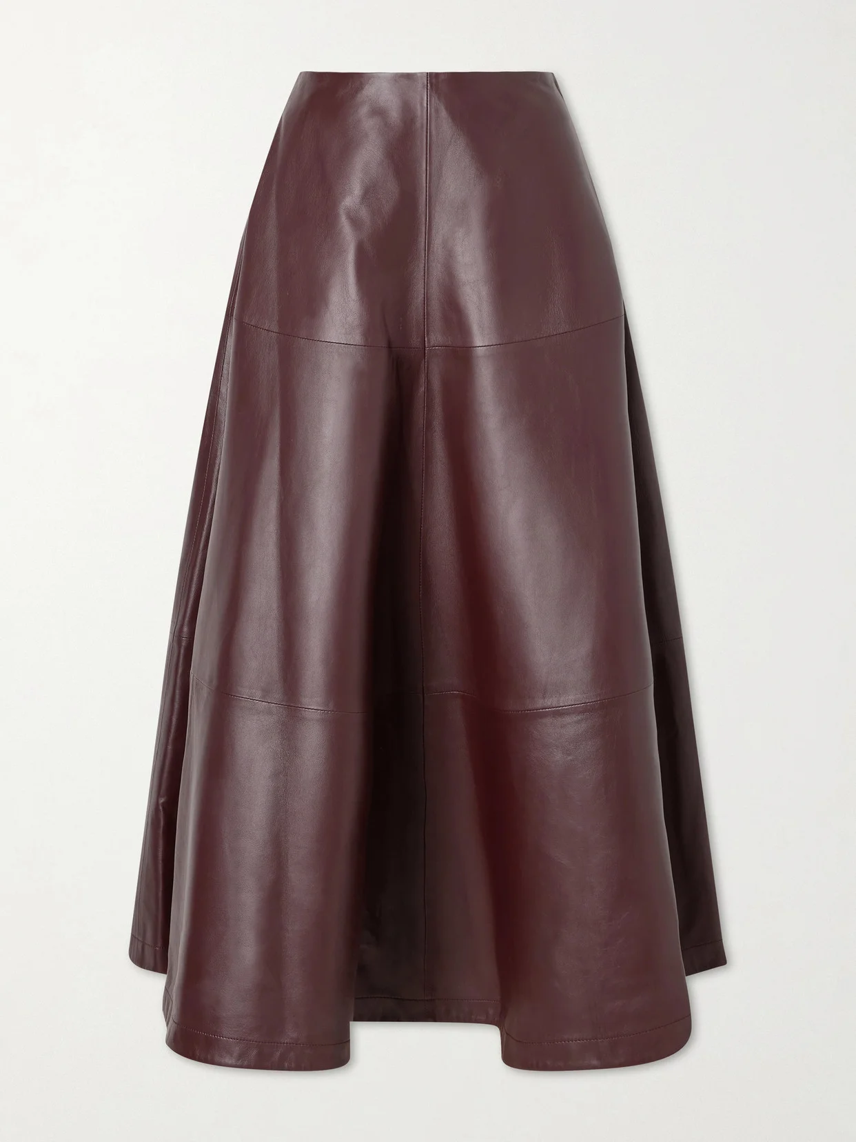 Altuzarra's 'Varda' skirt speaks to the label's modern femininity. Made from panels of leather, it's designed to sit comfortably at the waist and has an elegant A-line shape. Match your lipstick to the deep burgundy shade.