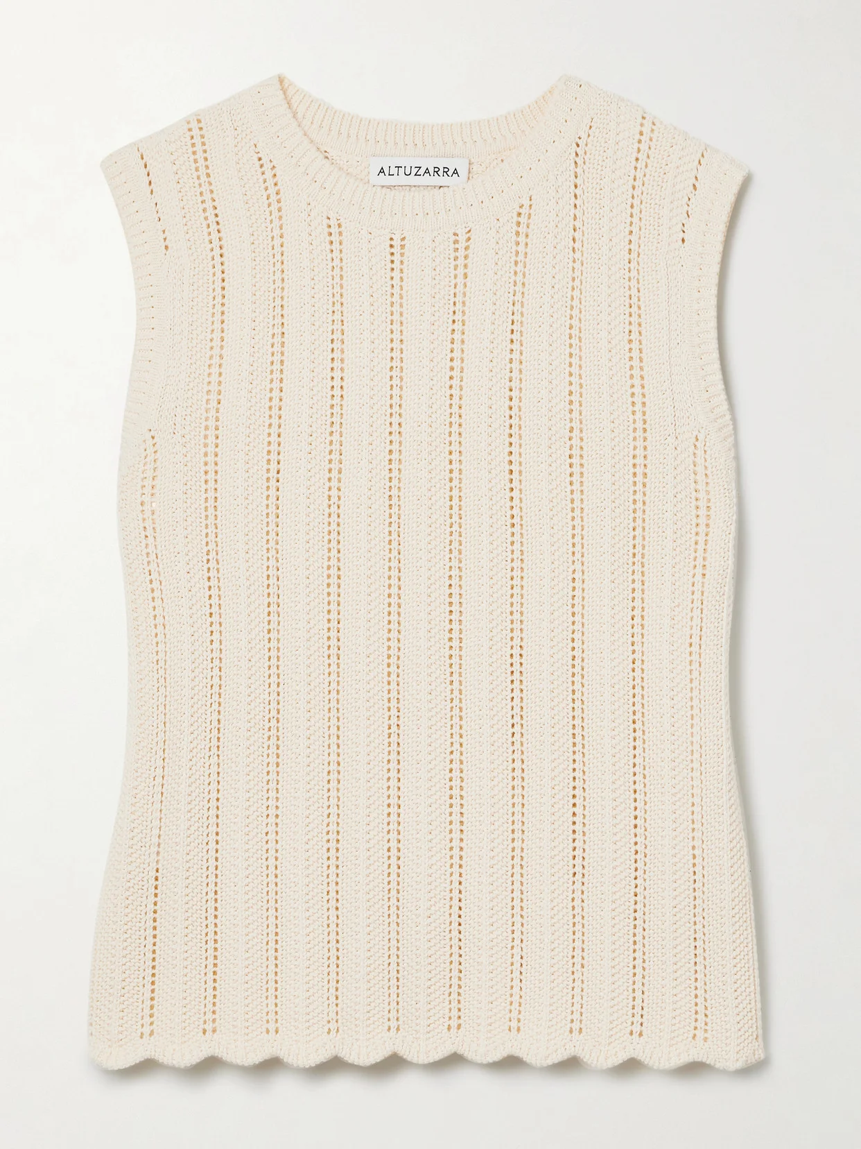 Altuzarra's 'Zabou' top is part of a set with the matching 'Petey' pants in our edit - it'll look just as chic with jeans or a printed skirt, too. It's cut from organic cotton and has a ribbed, open-knit construction and slightly loose fit. The scalloped hem adds a sweet feel.