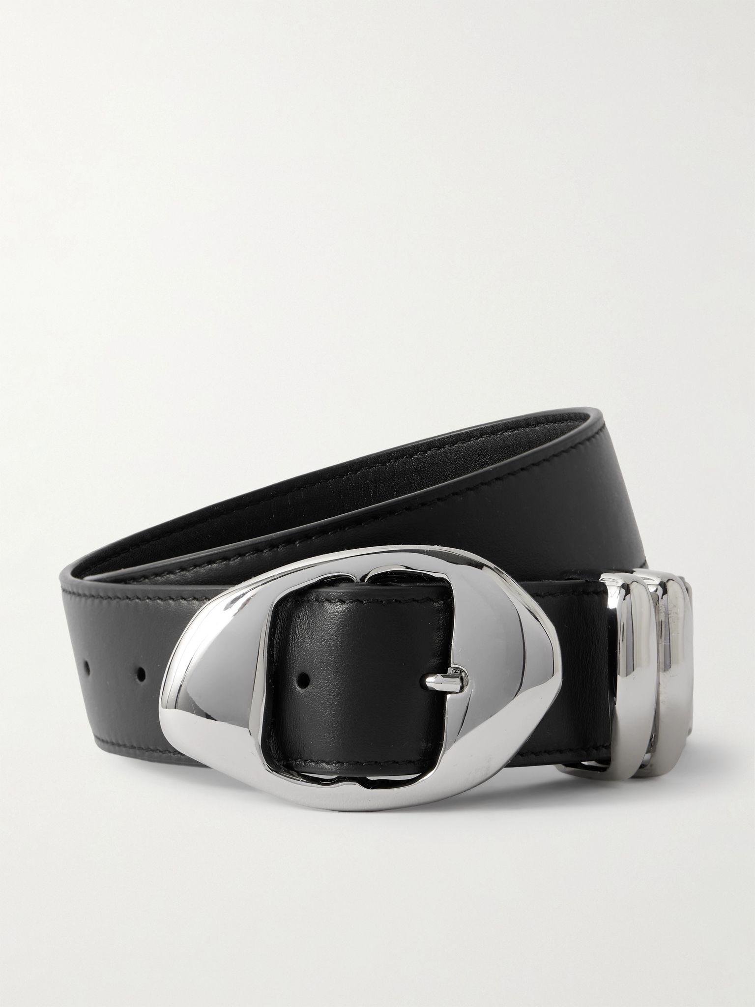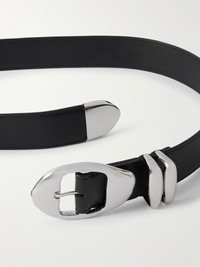 Never underestimate the power of a great belt. Amanu's 'The Grumeti' style has been handcrafted from Italian leather and fastens with a sculptural silver-tone buckle and matching tip that lends a subtle western feel. Size & Fit - Designed to be worn on the hips or waist - Measurements can be found in the link below Details & Care - Black leather (Cow) - Buckle fastening